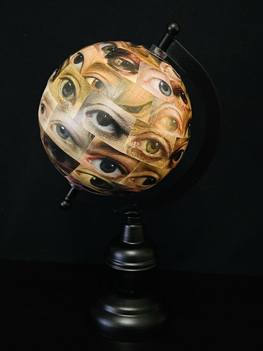 Art Deco Plane Globe with Vintage Steamer Trunk Labels