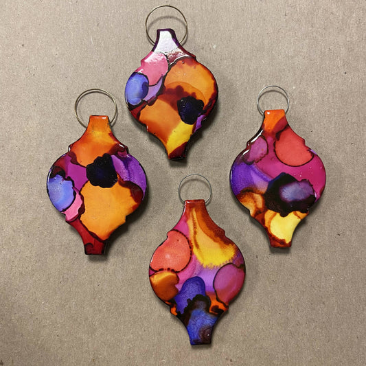 Arabesque Tile Christmas Ornament Alcohol Ink Set of 6
