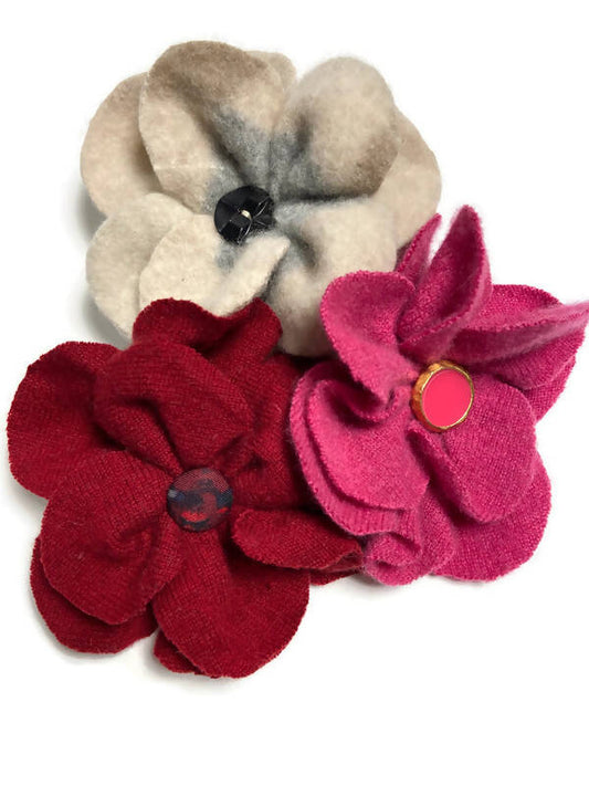 Repurposed Sweater Felted Wool Flower Brooch Pin