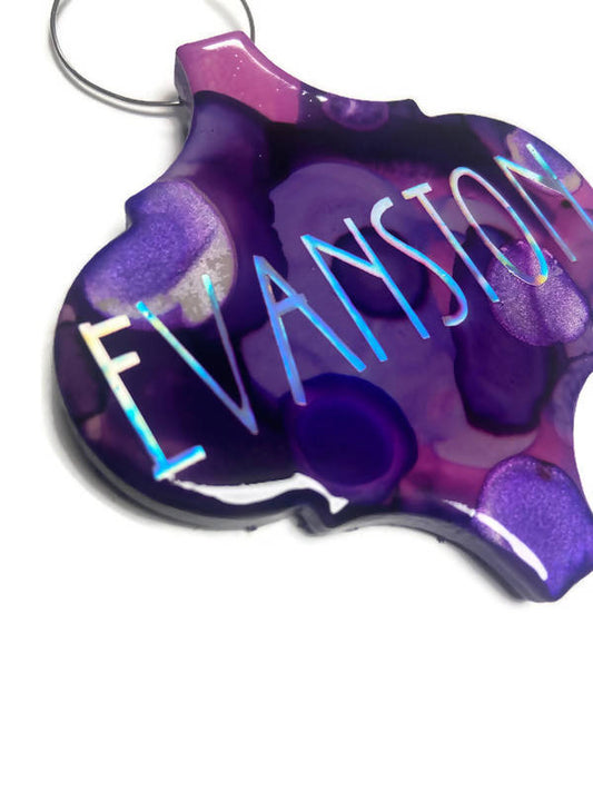 Reclaimed Tile Christmas Ornament Alcohol Ink Evanston Arabesque Shape