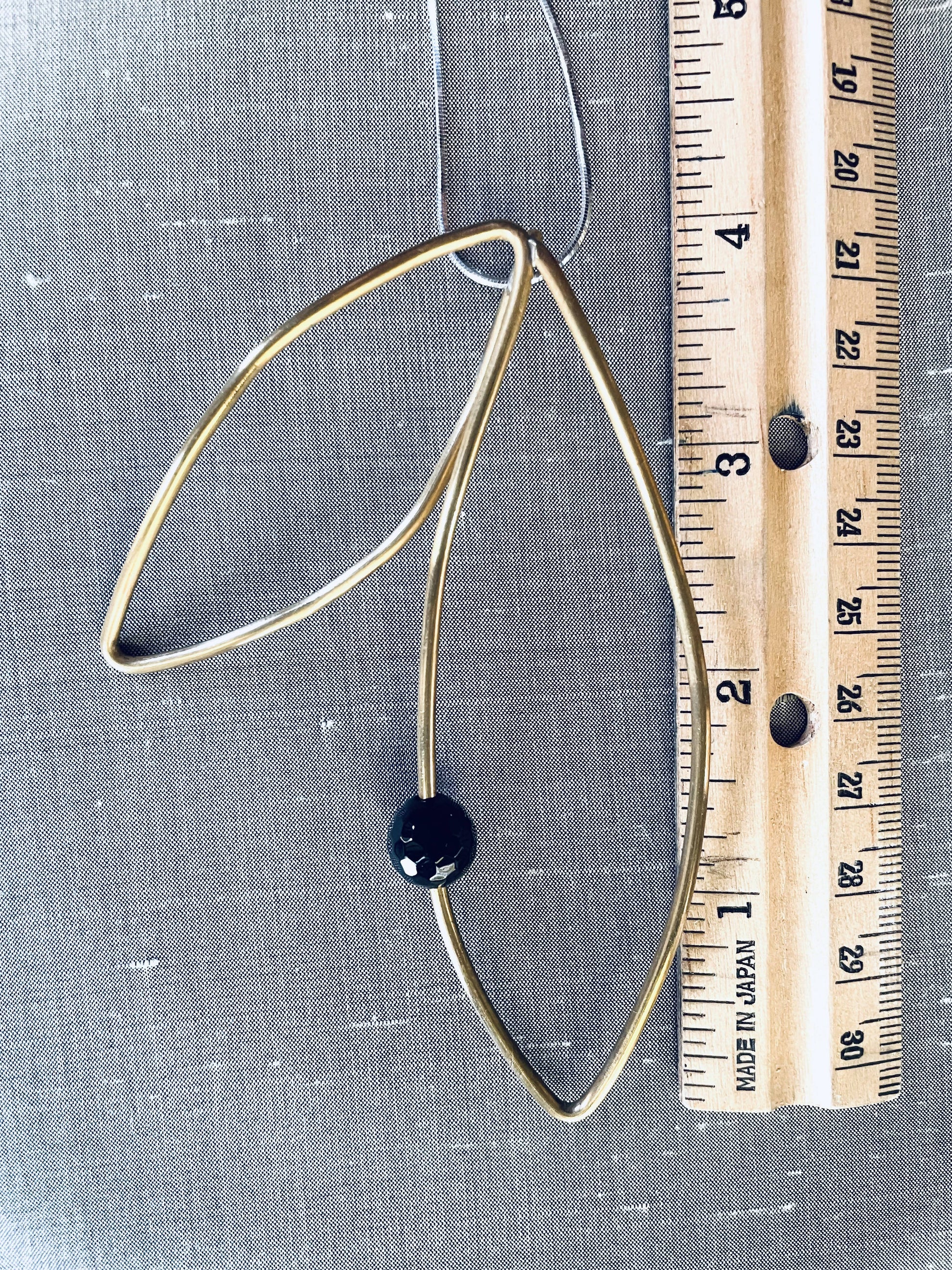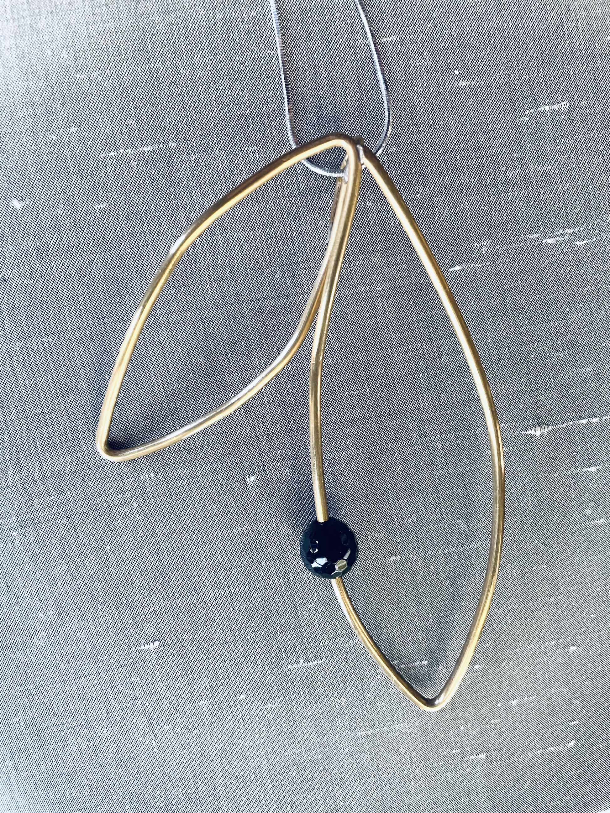 Formed 2 leaf brass statement pendant with Onyx accent. Stainless steel chain