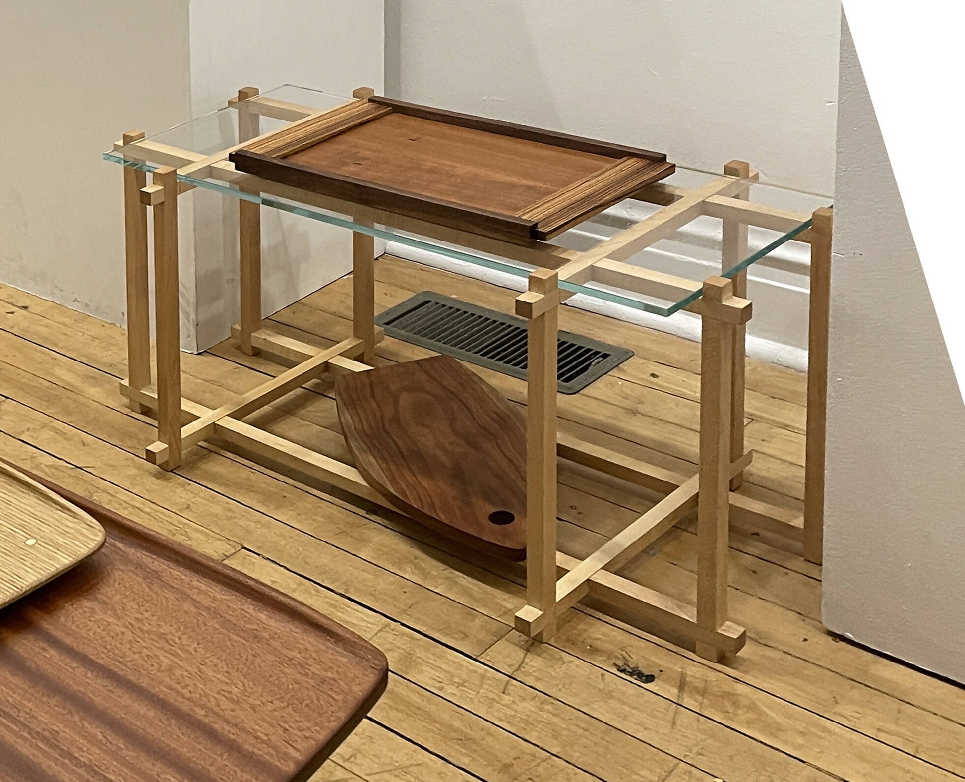 36" Coffee Table with glass top with an interlocking "puzzle" joinery in the maple frame.