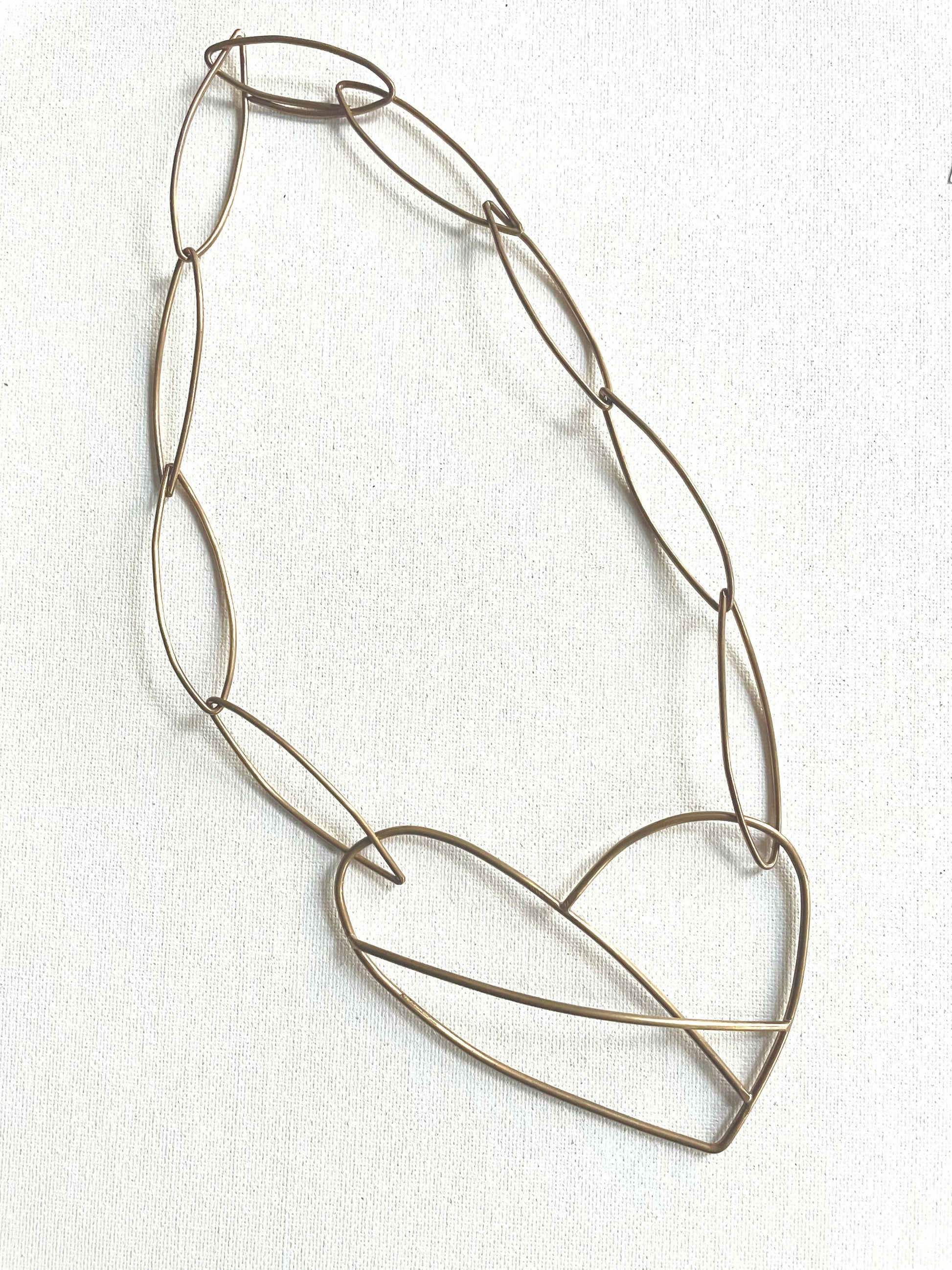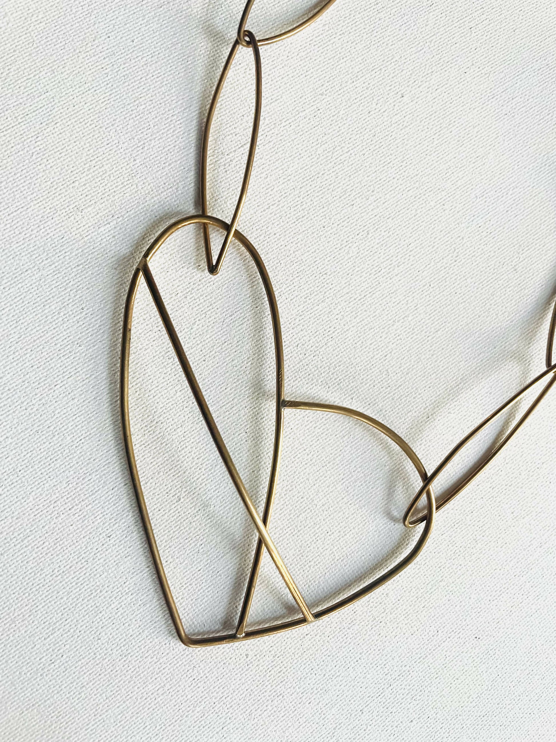 Hand formed brass 3D heart statement necklace. Modern & elegant statement piece.
