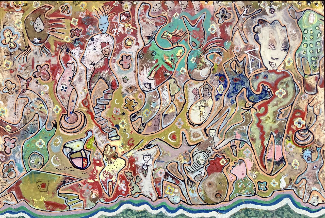 WINK 36"x24" mixed media on OSB (oriented strand board). $600 includes shipping.