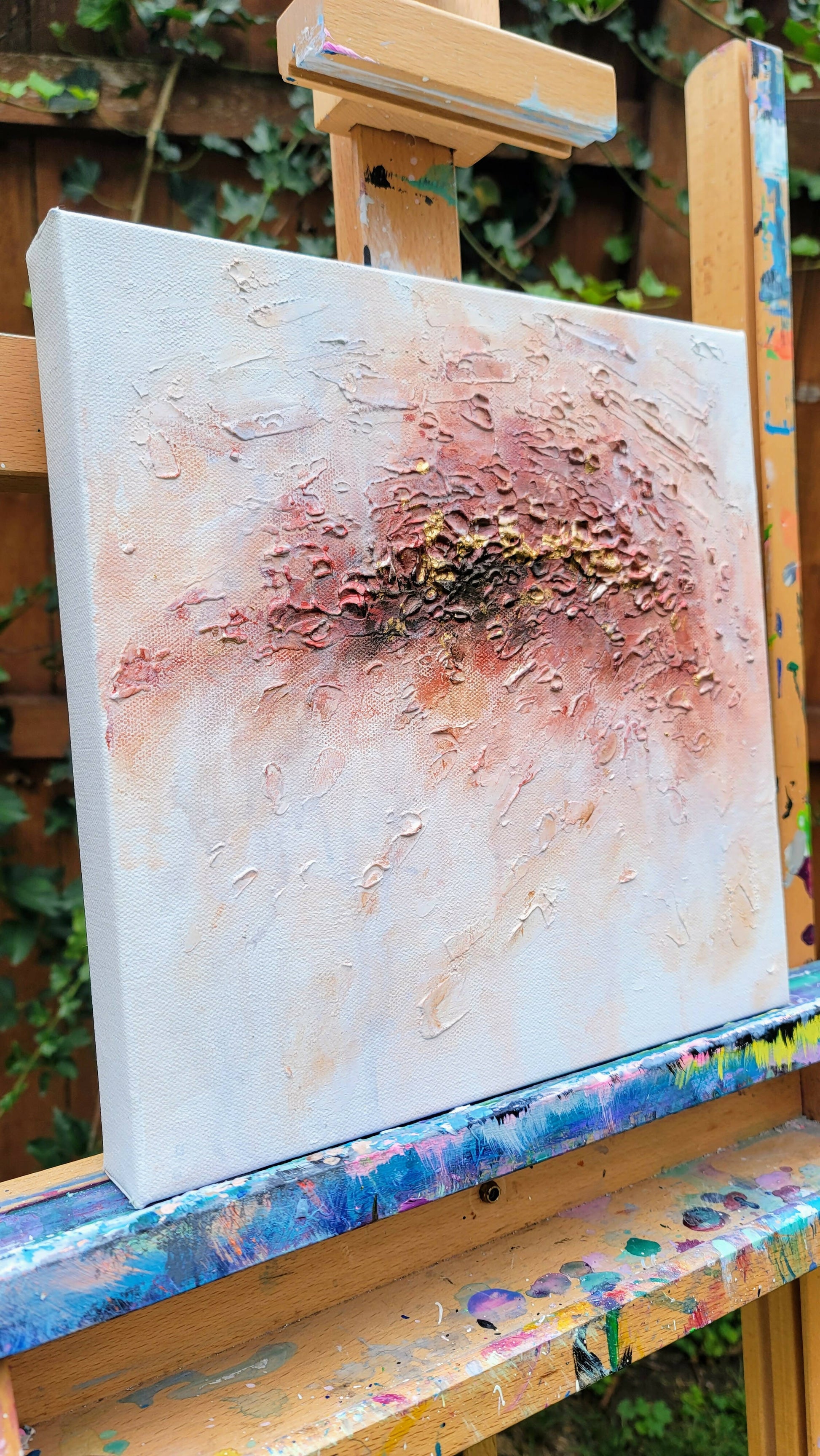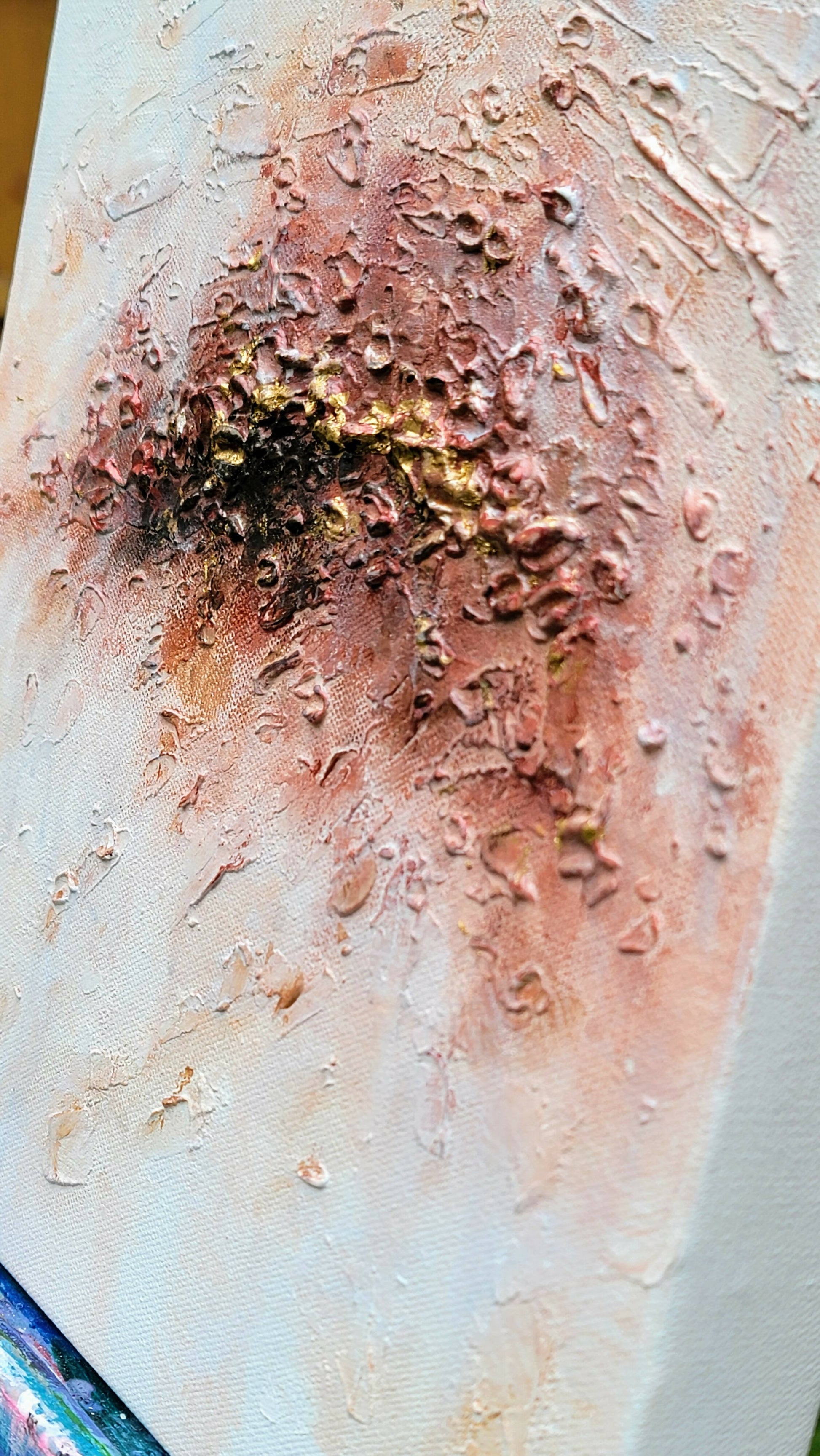 My inspiration included creating an interesting, but simple, piece. This piece has so much texture, and each time I look at it, I notice something new about it.