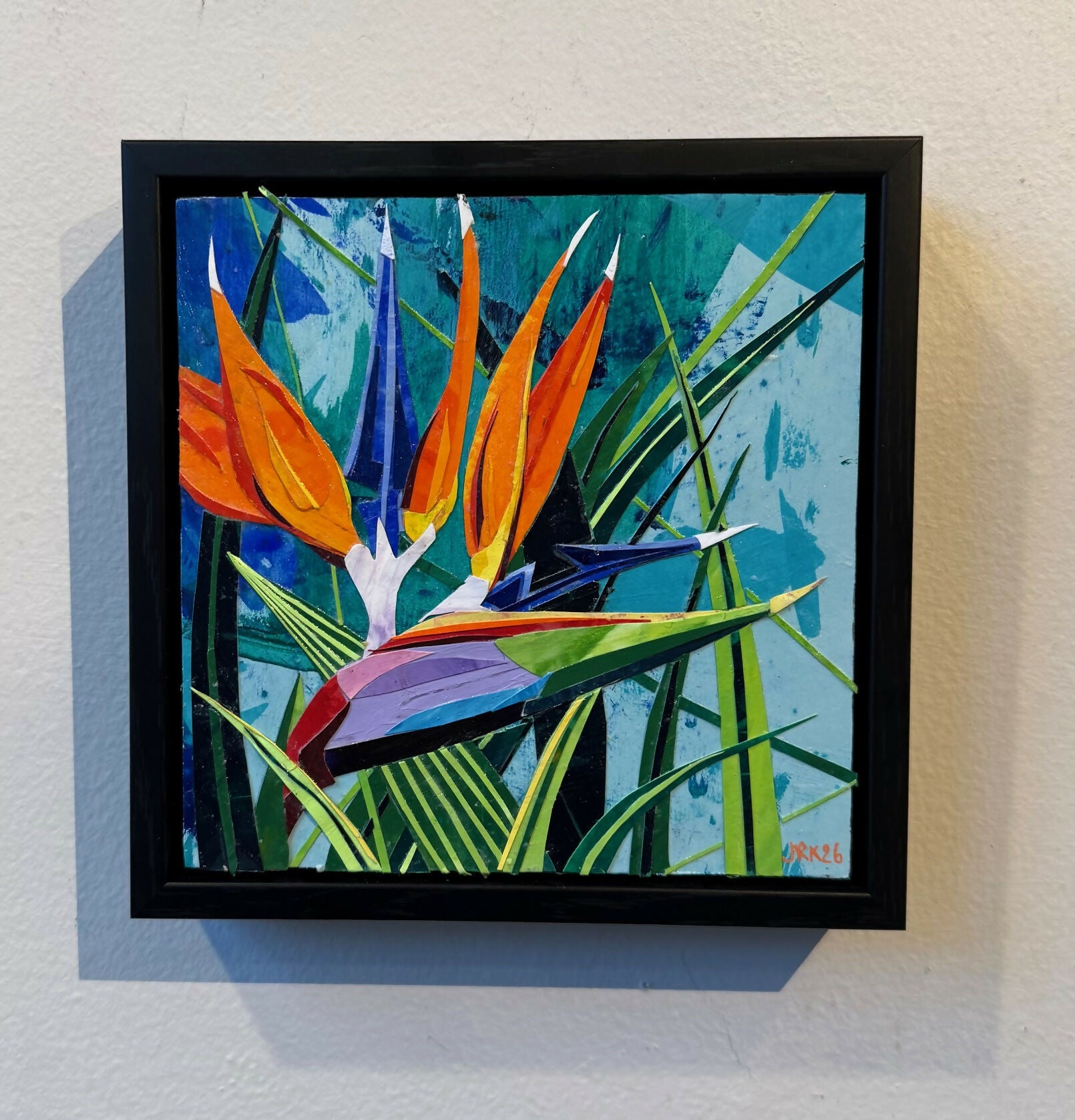 Framed in a black float frame, ready to hang.