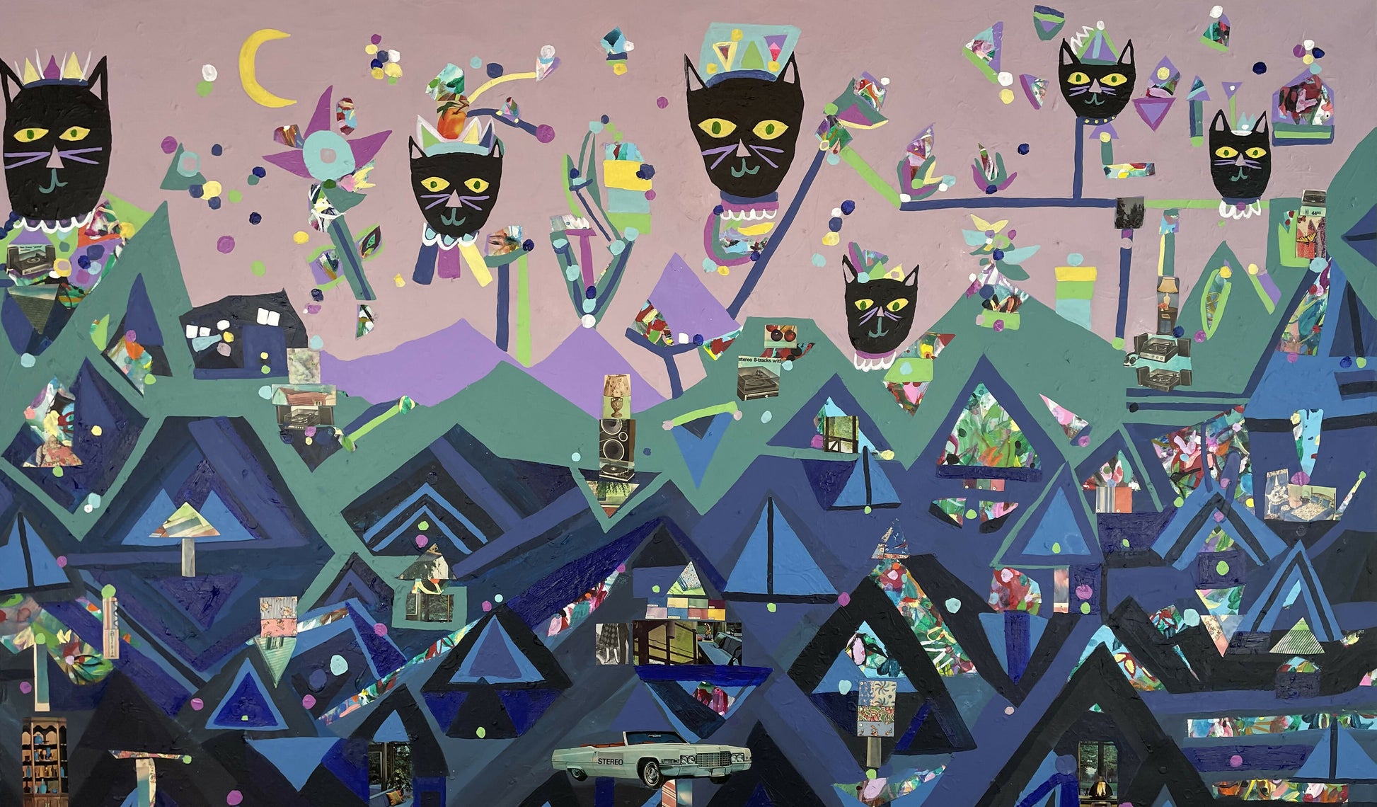 Acrylic, watercolor pencil and recycled vintage paper on canvas