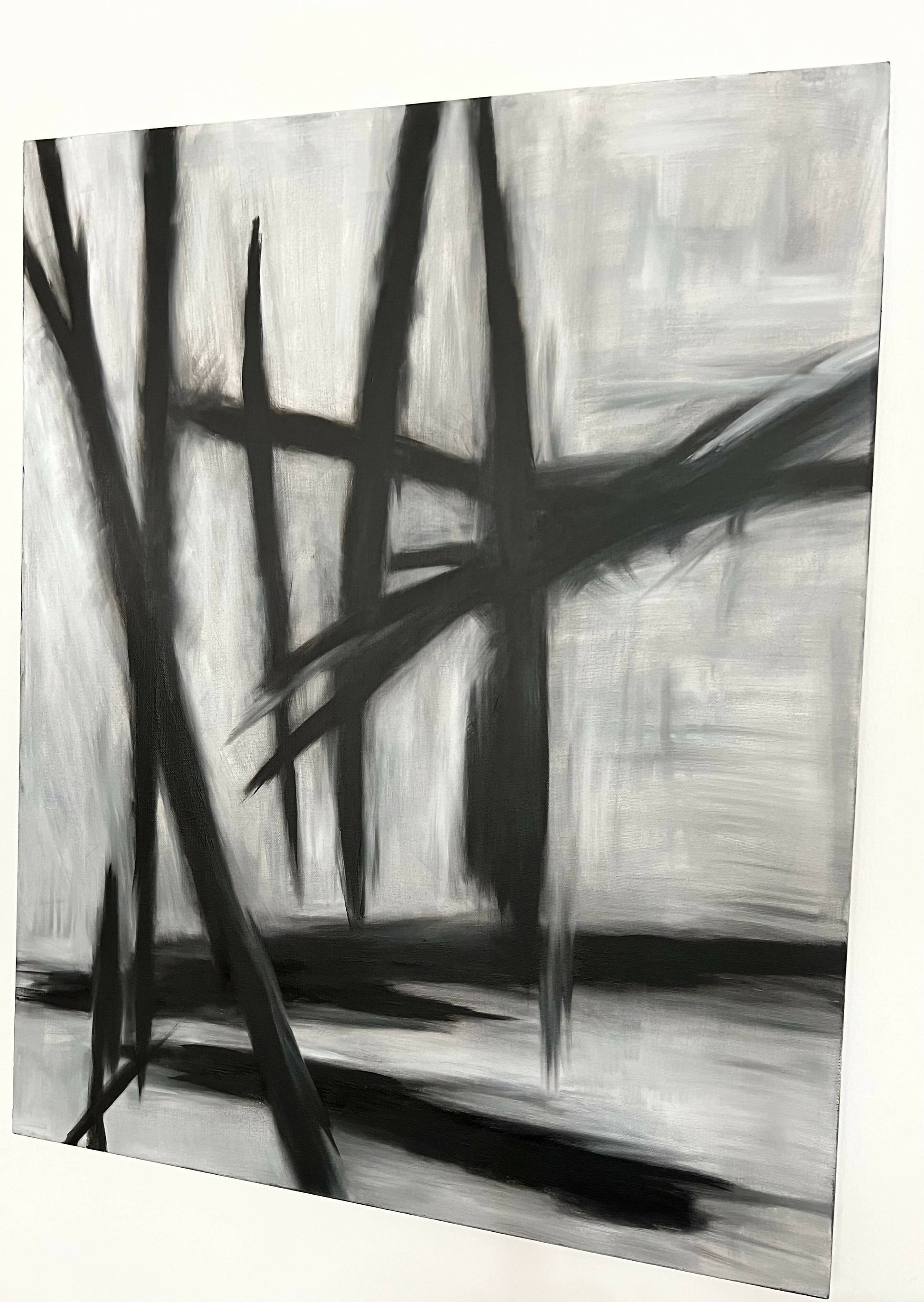 24 x 30 acrylic on 1/2 inch canvas black and white lines.