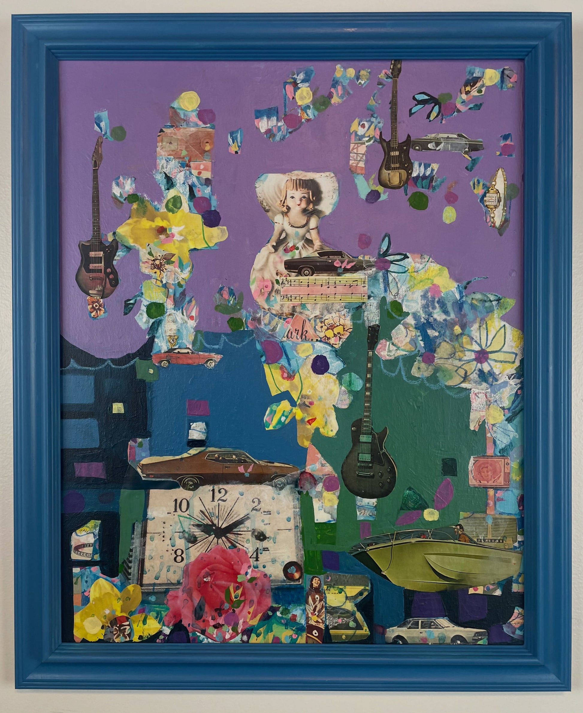 Acrylic, watercolor, lrecycled vintage paper on canvas