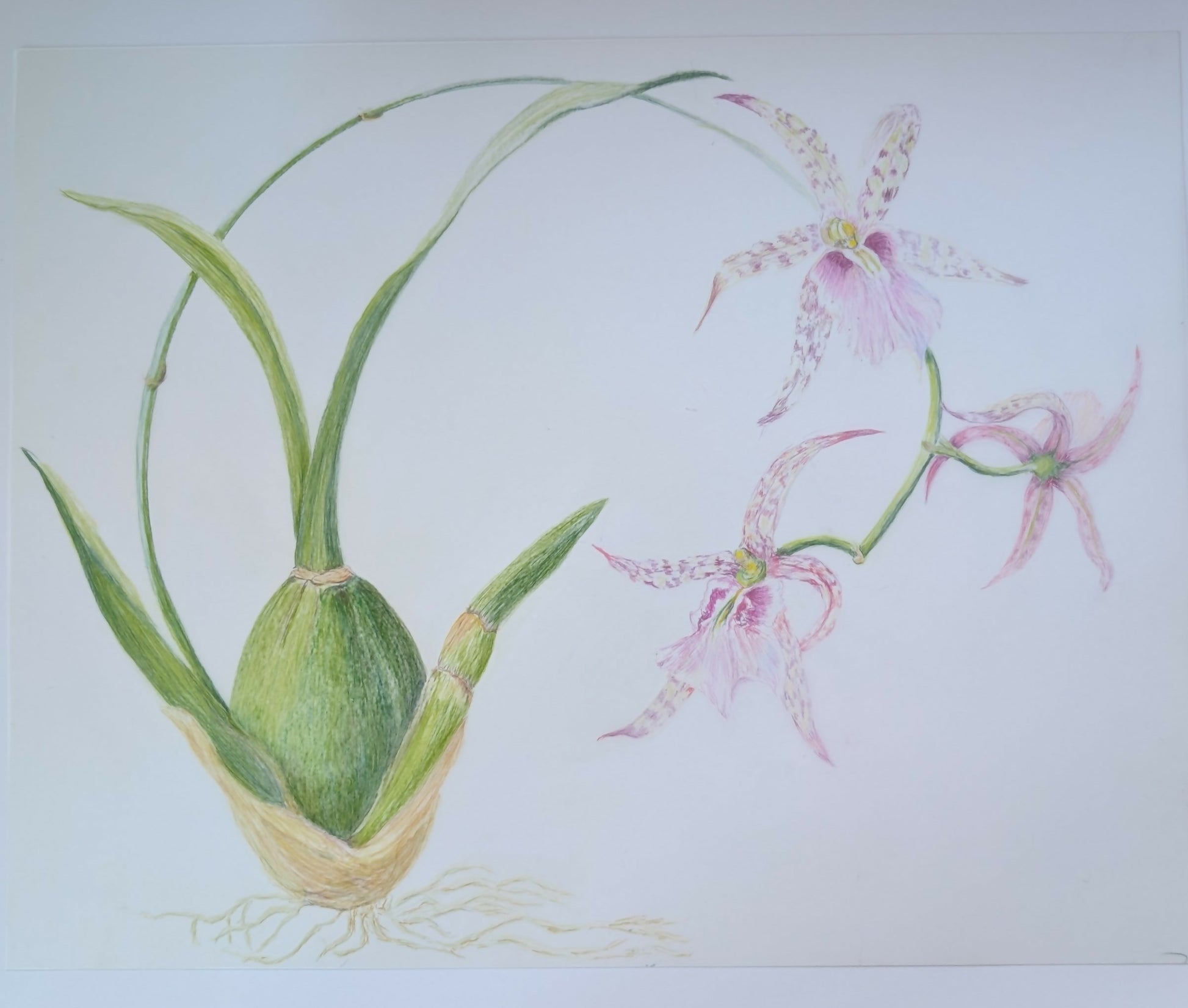 Color Pencil drawing of a Brassia Orchid shown at the Botanic Garden this year.
