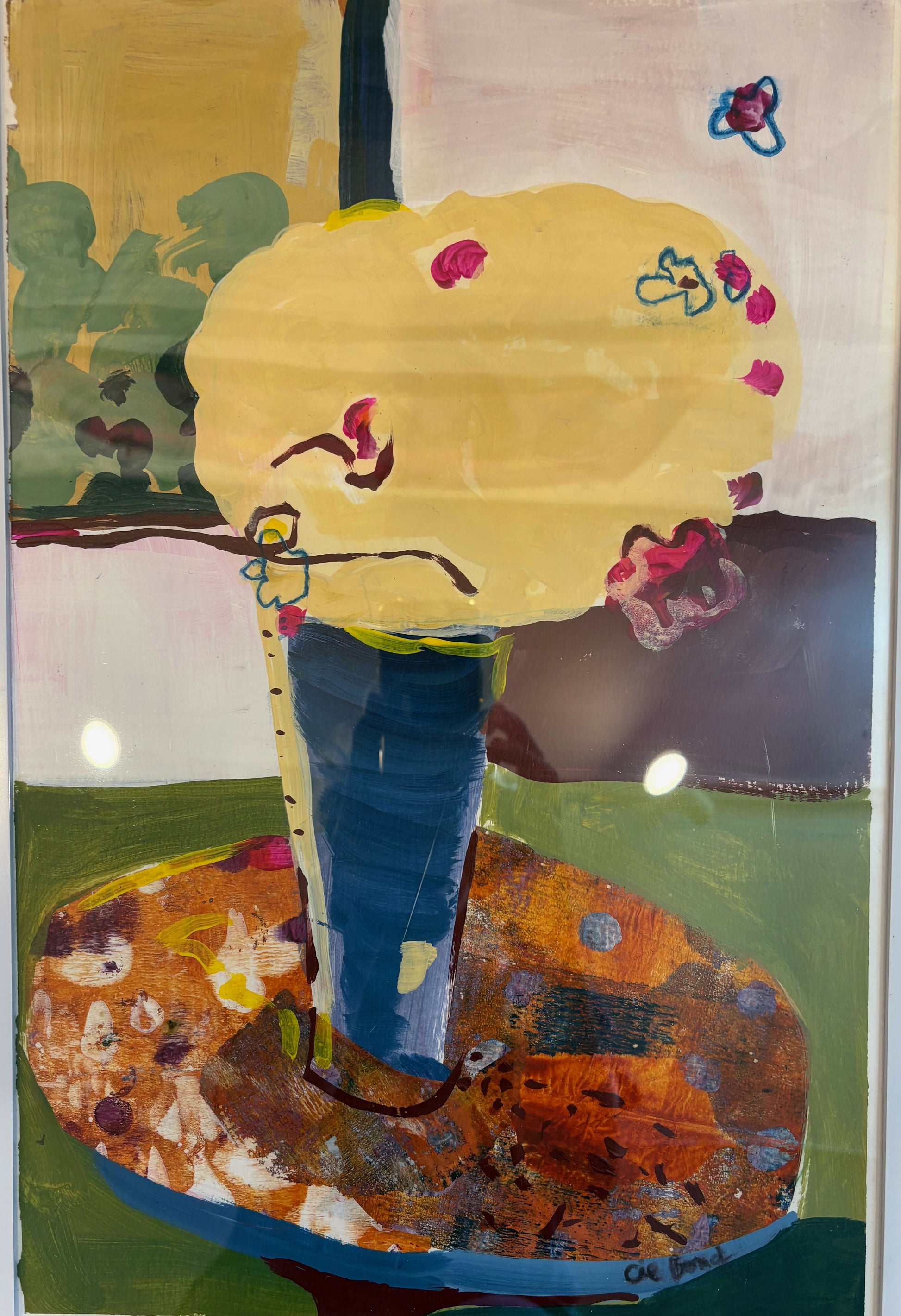 12x18 Acrylic, Collage and Aquarelle Crayon. Framed.