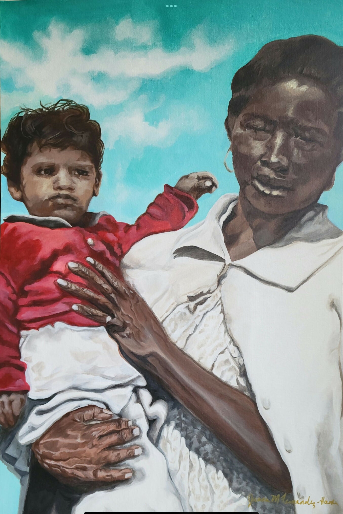 This is a painting of my Aunt Carmita and myself when I lived in Cuba. It is part of a series of portraits called Las Caras Lindas de Mi Gente Negra.