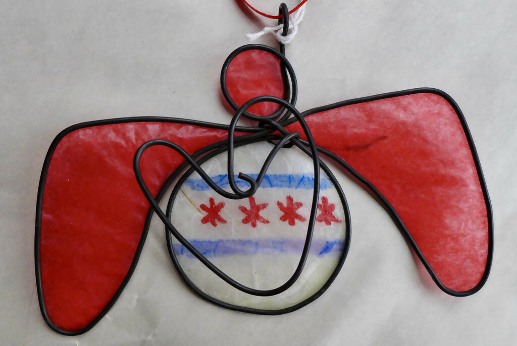 MMCO634 Red Chicago Flag Heart Angel 5.25x4.5 inches steelwire, markered paper, encaustic medium