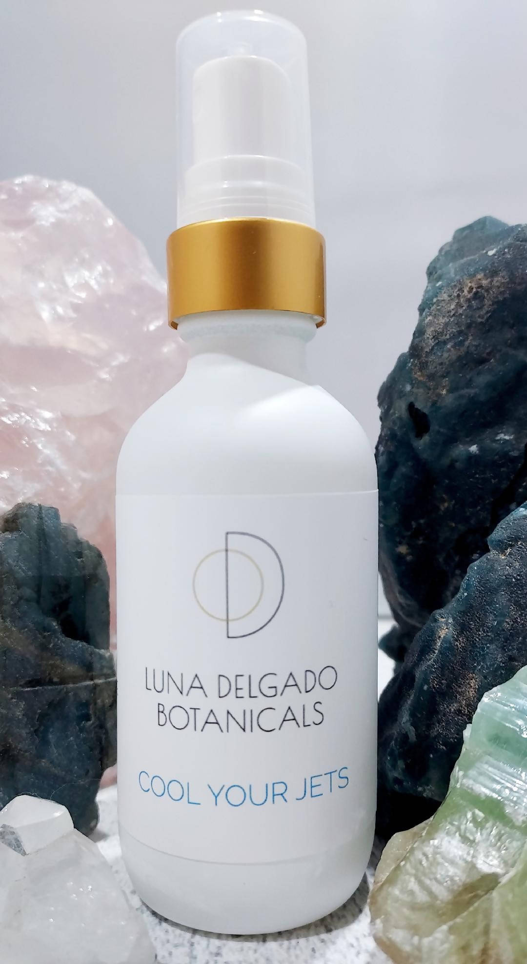 Quick-chill body mist. Freeze your hot flashes with Cool Your Jets aromatic therapy. Spray liberally on the chest and back of neck to arrest hot flashes. Keep by the bedside for middle of the night support!