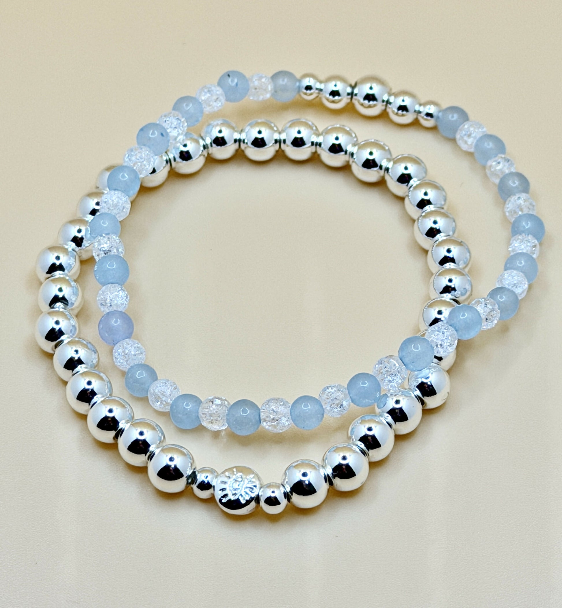 Add a touch of elegance to your wrist with this handcrafted trio. Made with high-quality glass beads, semi-precious stones, and gold-plated or sterling silver accents — never plastic or tarnishing metals — each bracelet is designed to mix, match, and shine all year long.