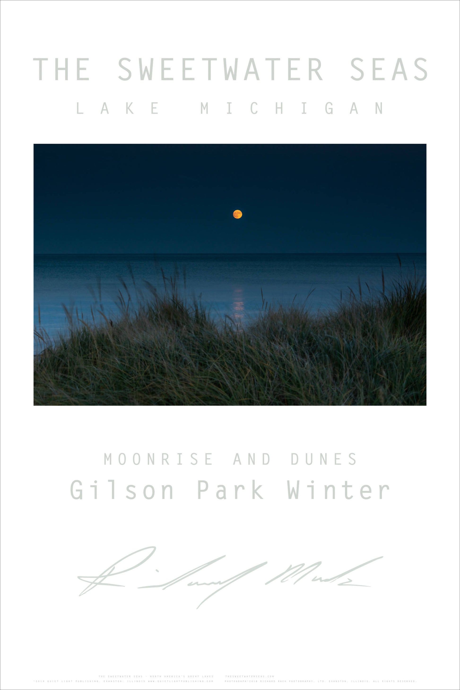 Sweetwater Seas Fine Art Poster - Lake Michigan, Gilson Park Moonrise & Grass