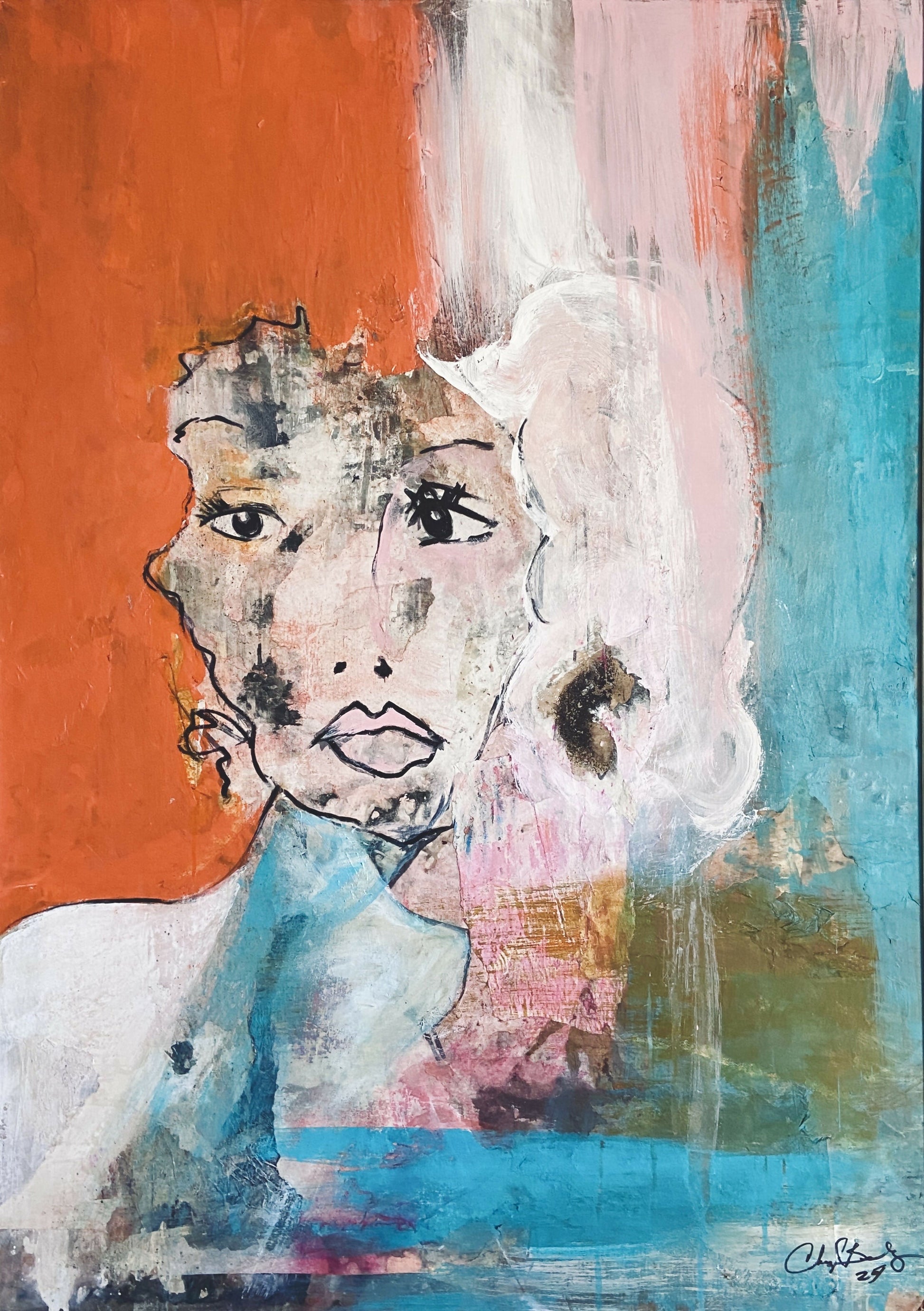 Mixed media collage, ink, pastels on wood