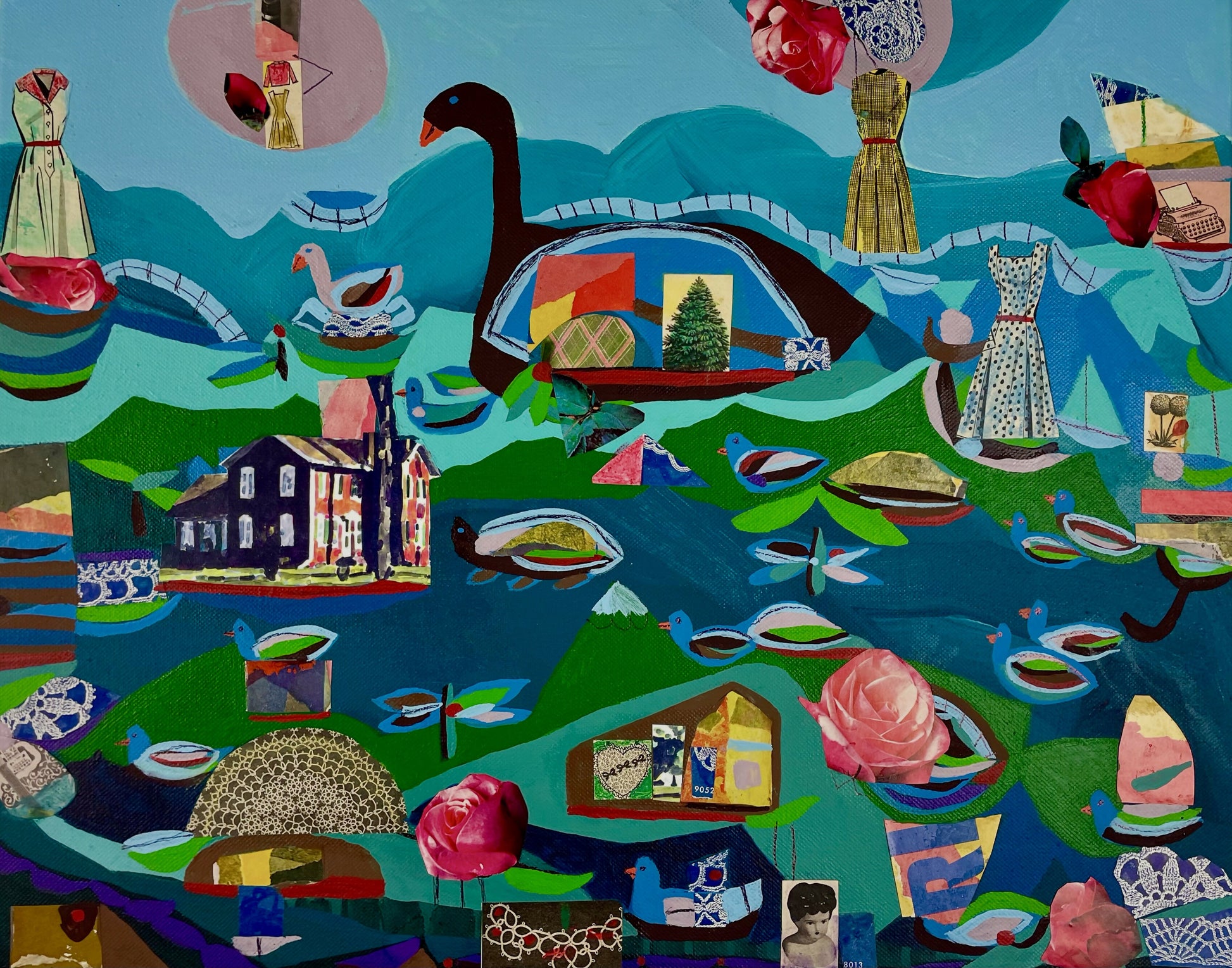 A mixed media painting collage from artist Kristen Neveu~