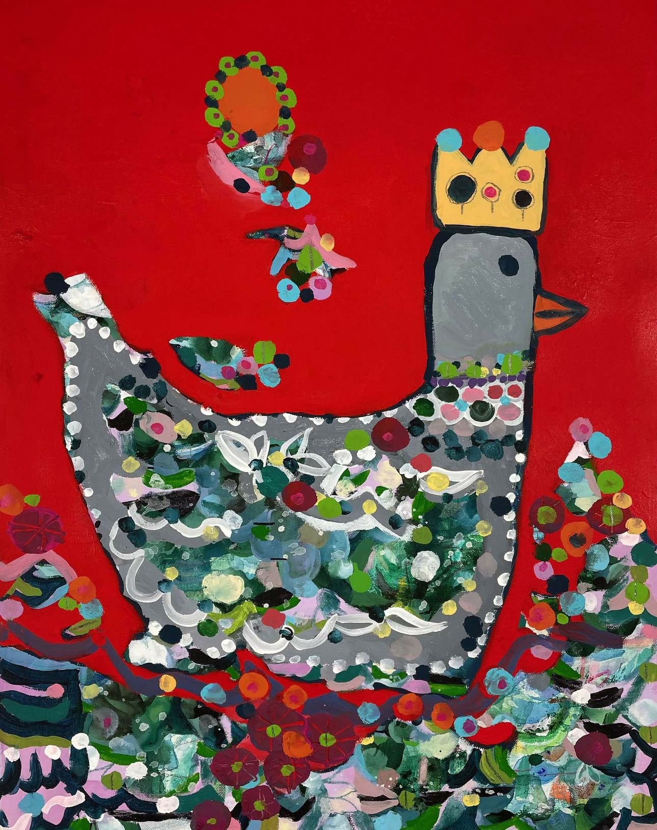 An abstract crowned duck painting from artist Kristen Neveu~