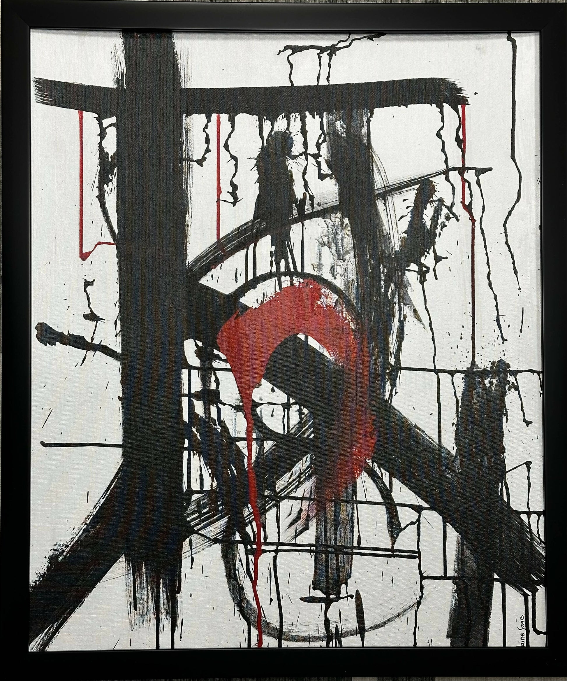 20x24 acrylic painting on canvas with black frame.