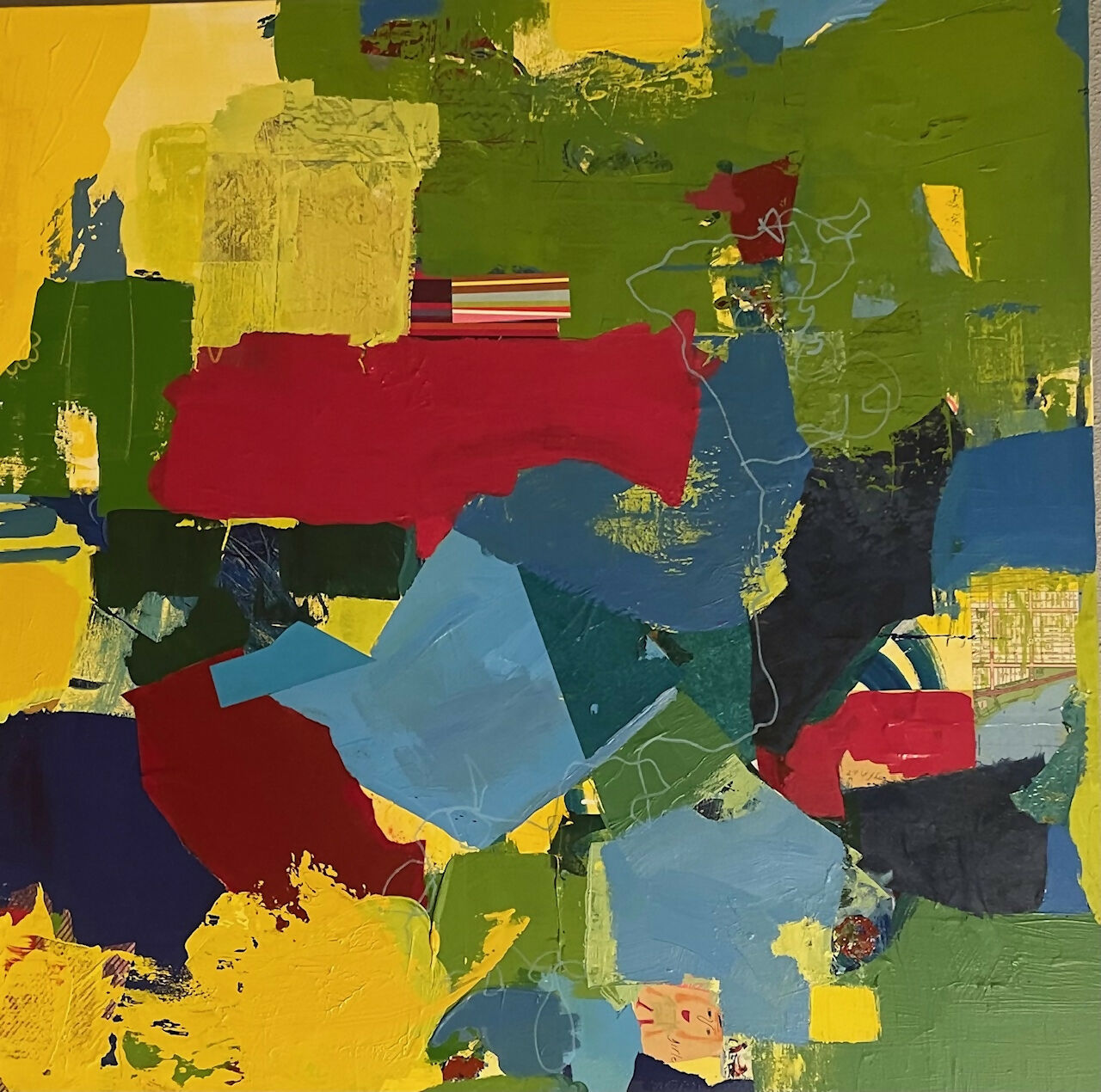 Mixed Media with Acrylic and Collage on Canvas. 36x36.