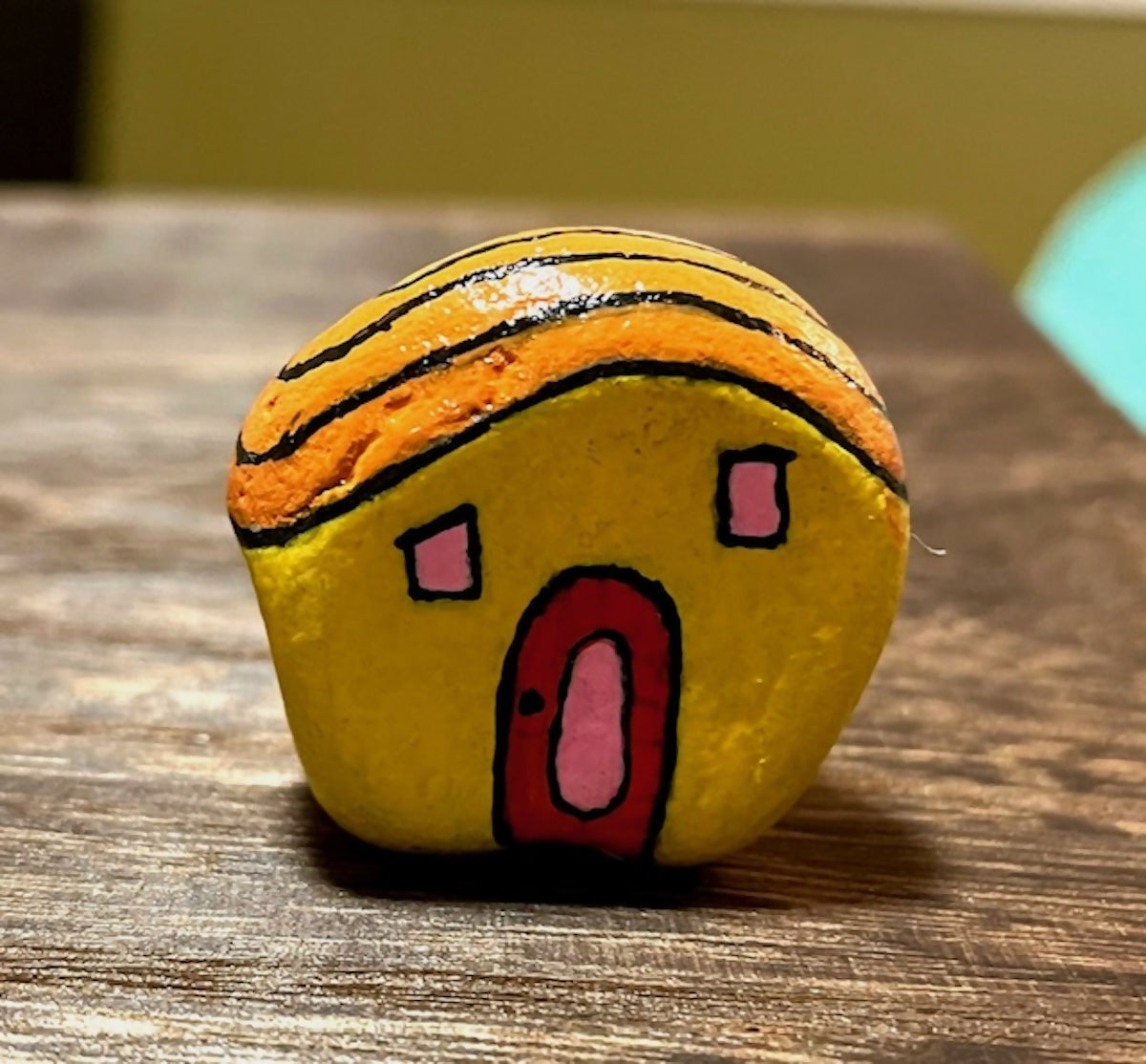 Gnome Home, large: Beach rock painted with acrylic paints and sealed. Aprox. 2 x2 inches.