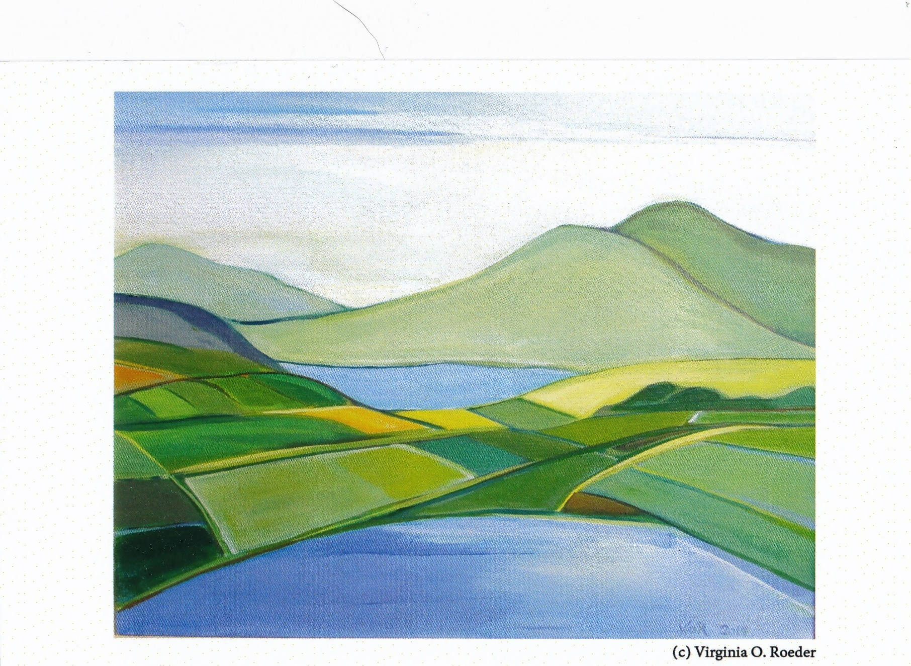 Abstract landscape, acrylic on canvas, 14 1/2" x 18 1/2"' framed with wood lattice