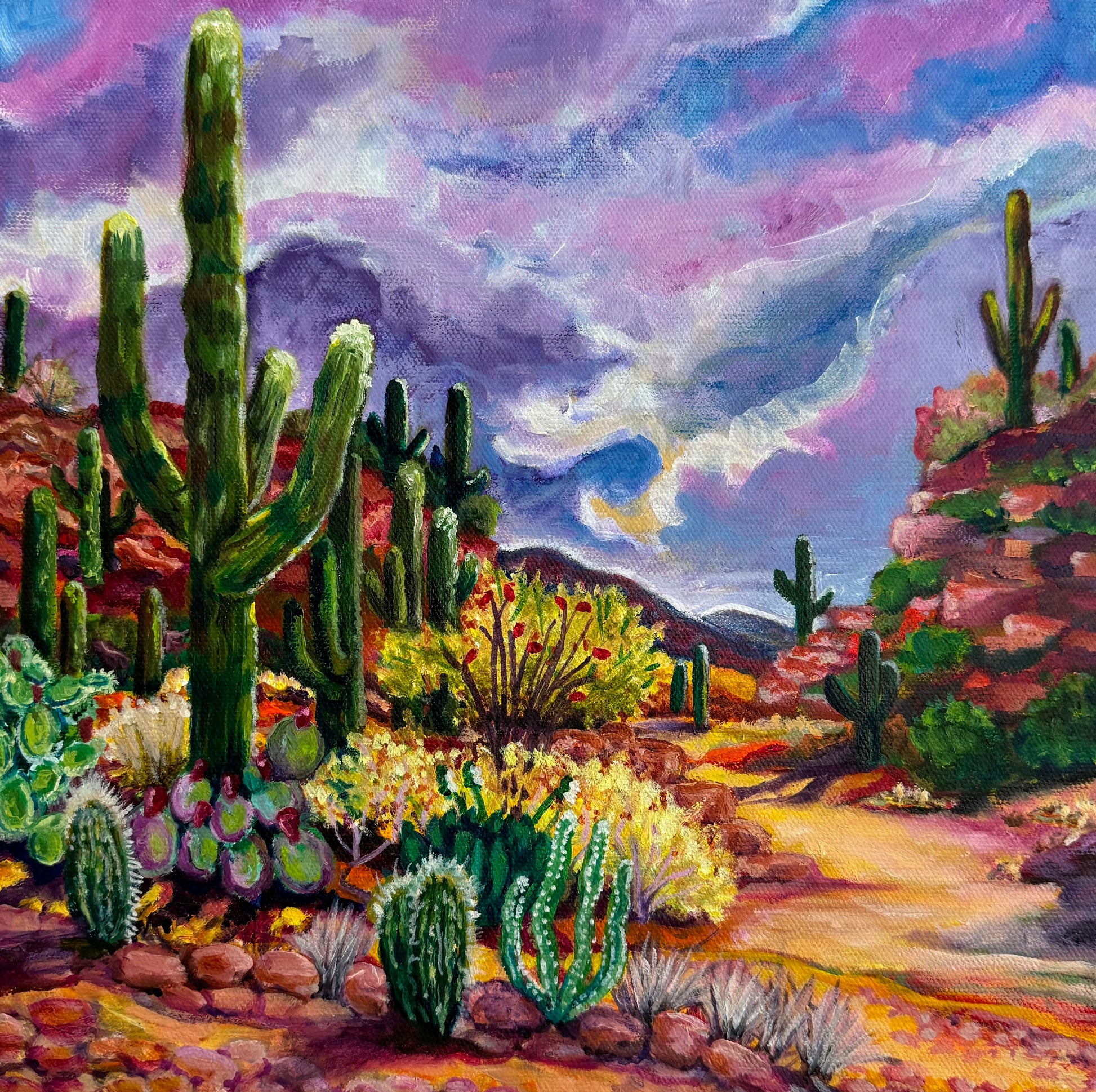 Giclee print from a 14 x 14 oil painting from my travels at Saguaro National Park.