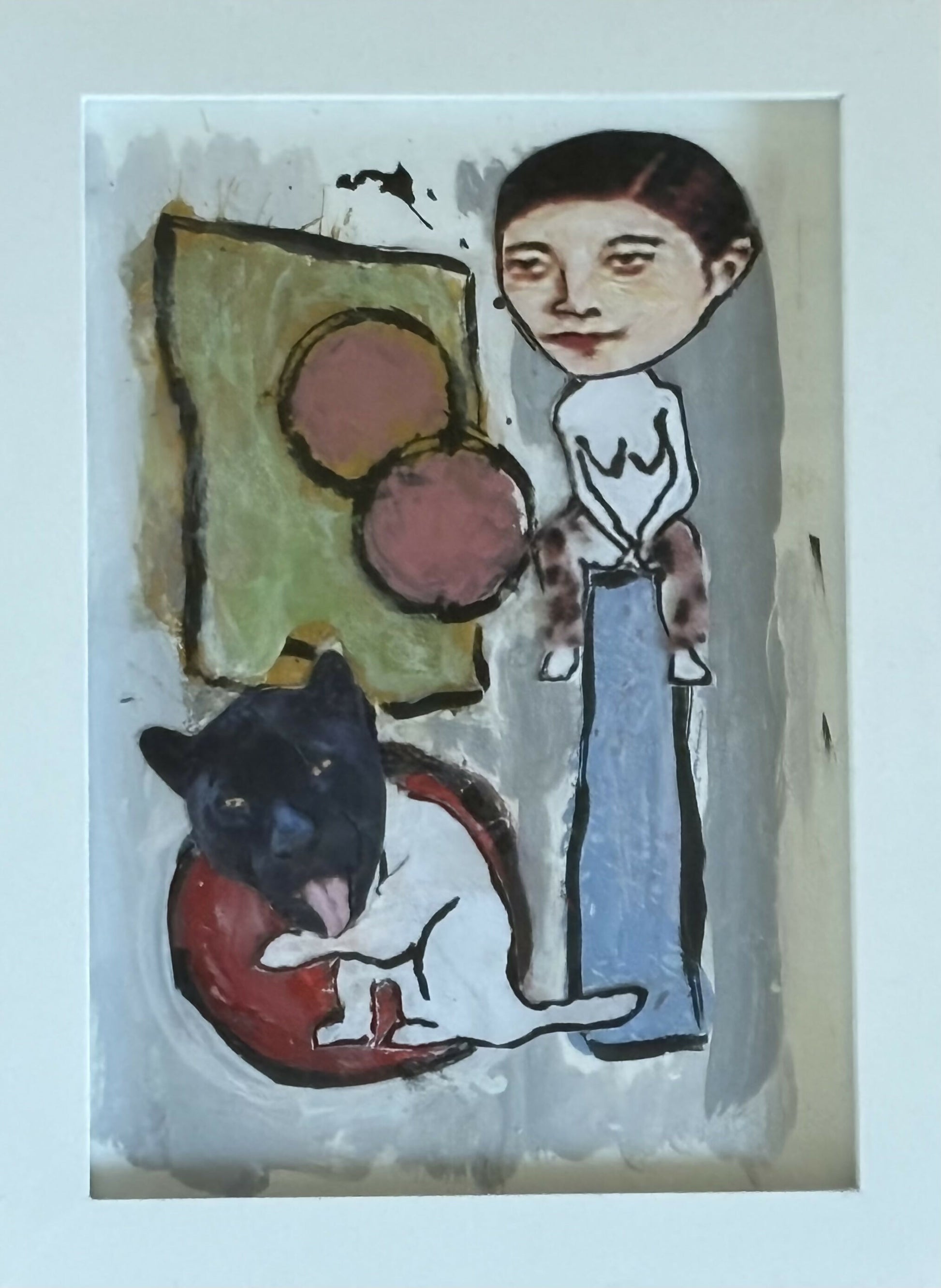 5x7” mixed media collage in a white mat and white wood frame.