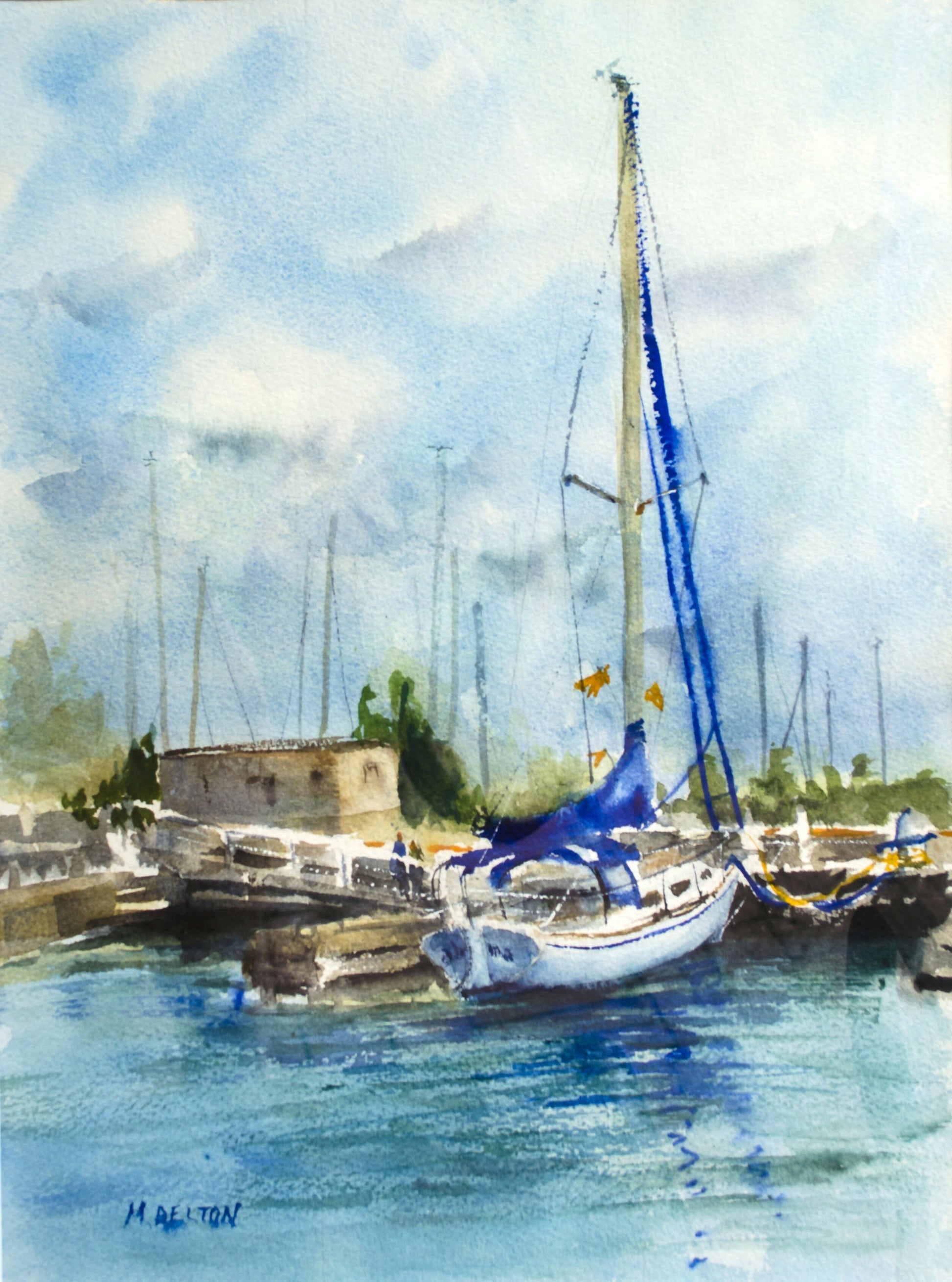 I am repeatedly drawn to the dazzling blues of water, sky, and boats. Painted en plein air in Port Washington, the challenge of capturing the sunlight that day was keeping my easel from turning into a sail.
