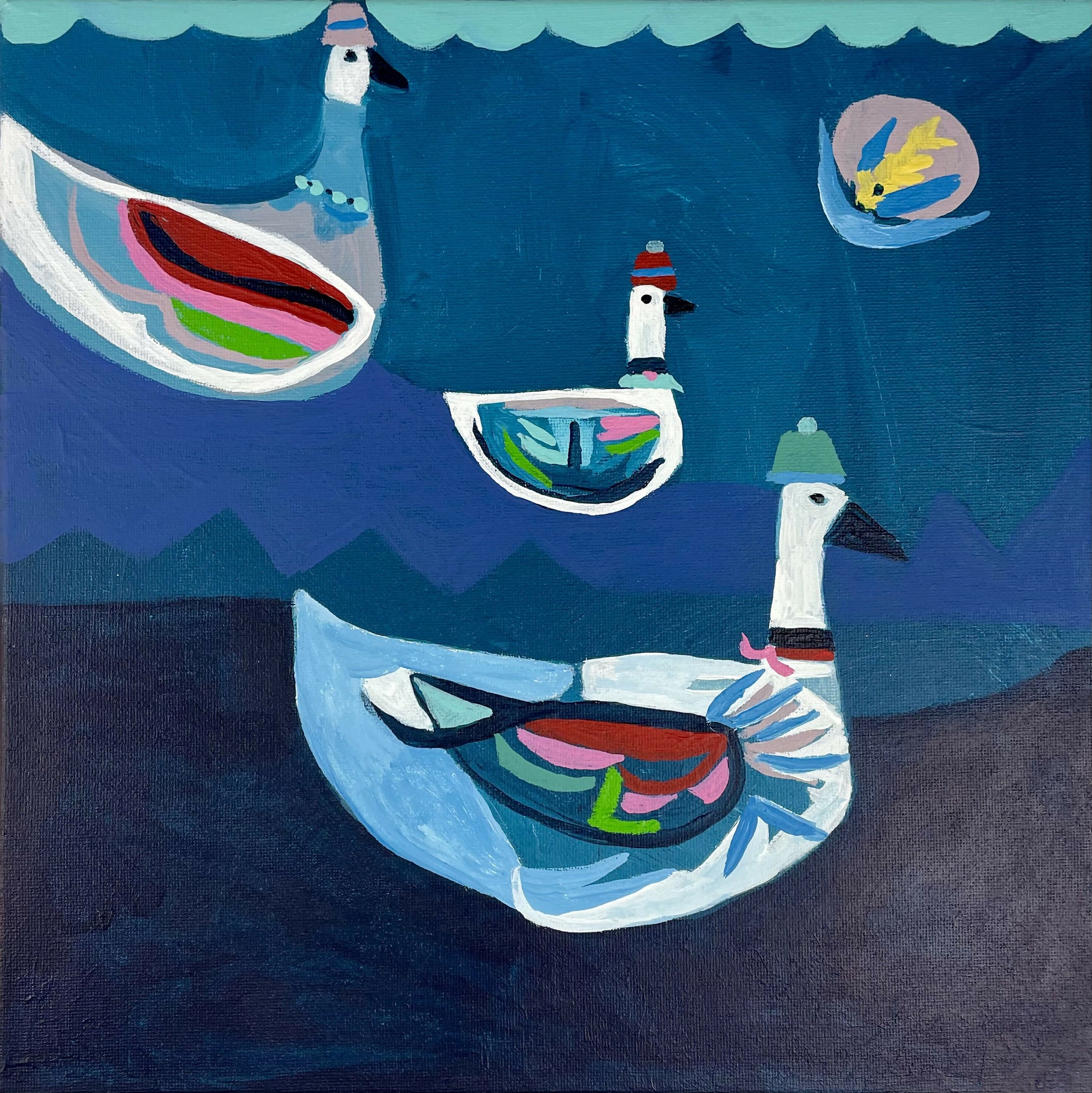 An abstract duck/swan painting from artist Kristen Neveu~