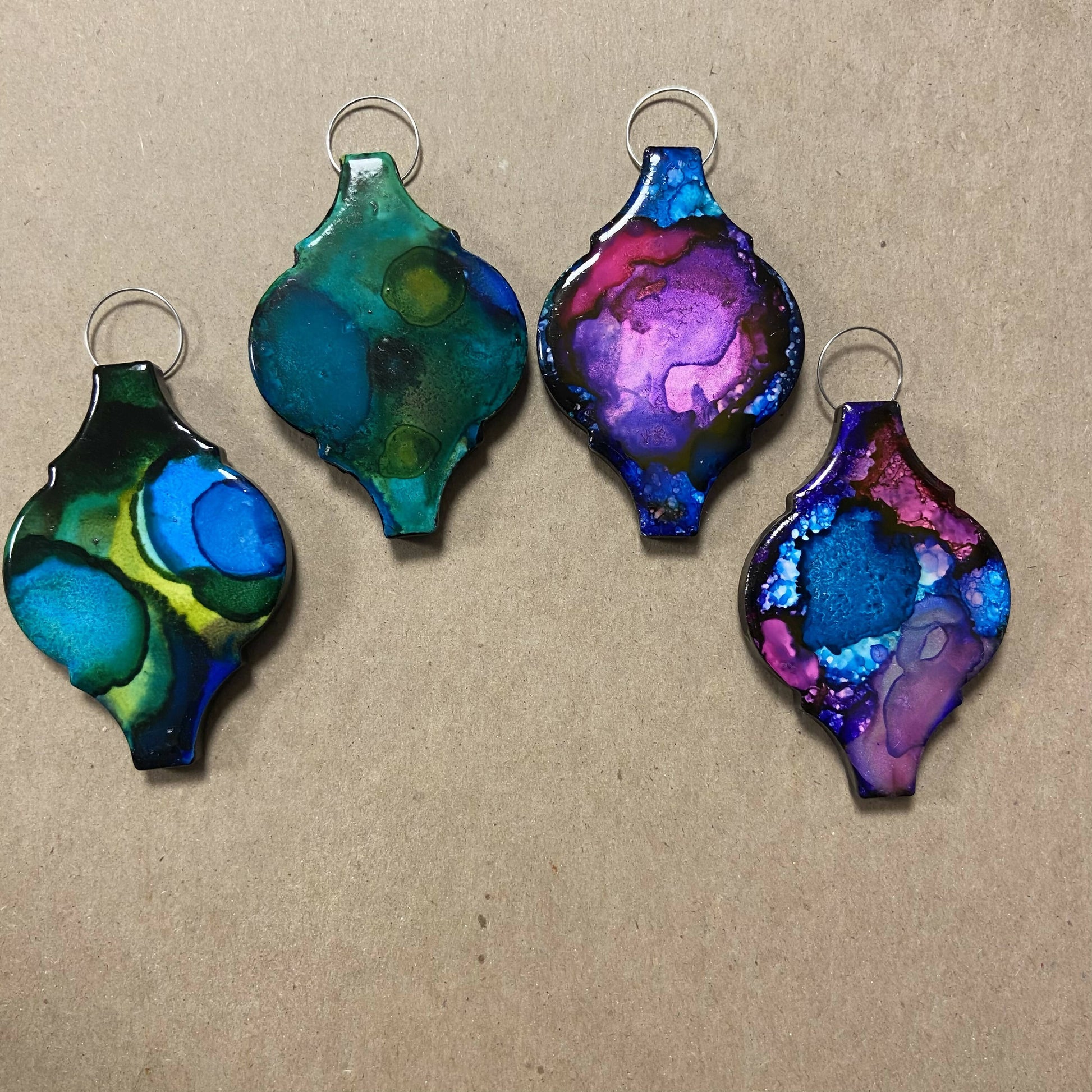 I began with a reclaimed ceramic tile, large arabesque-shaped 3”.