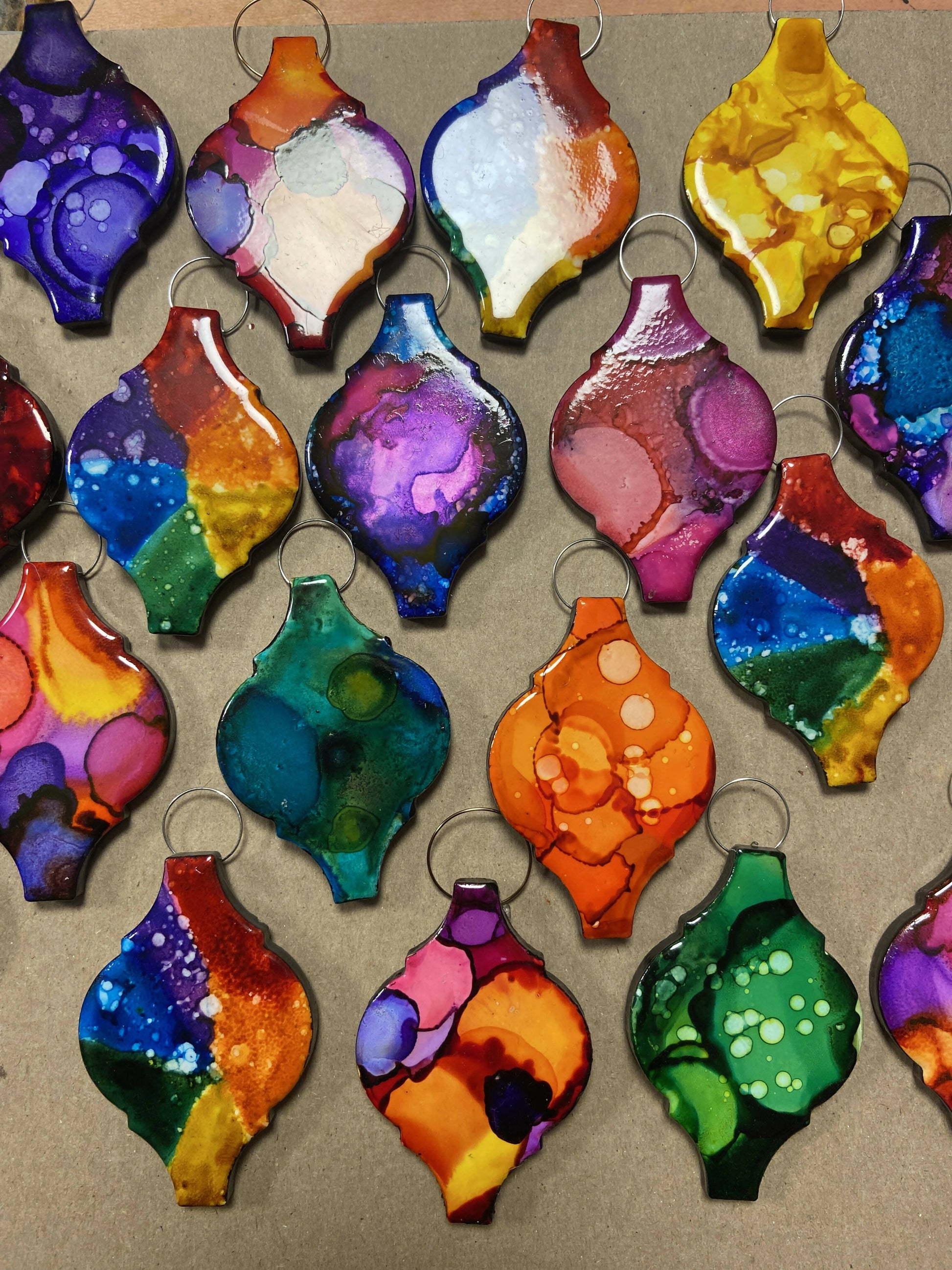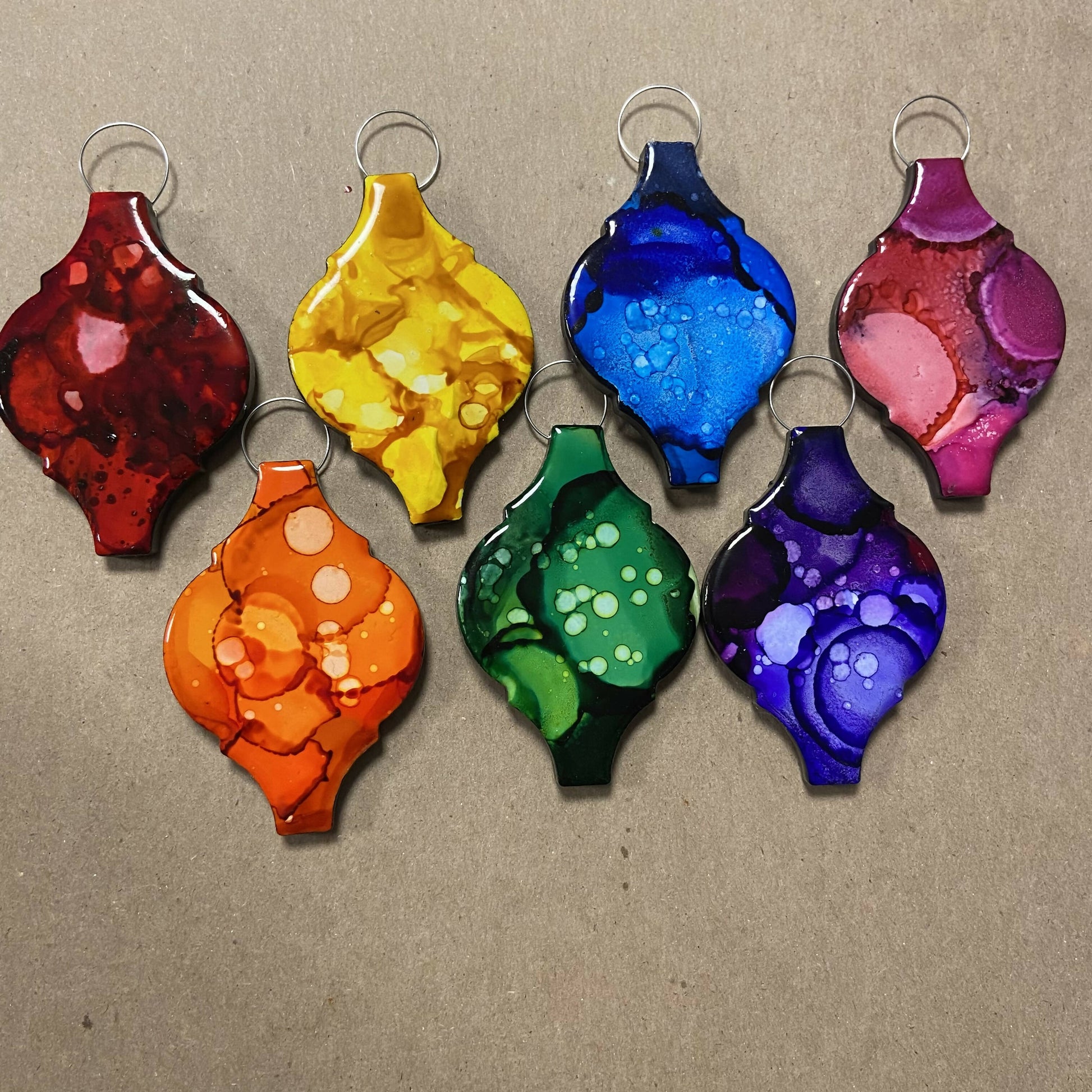 Handmade, one-of-a-kind Christmas ornament. Colors inspired by the rainbow.