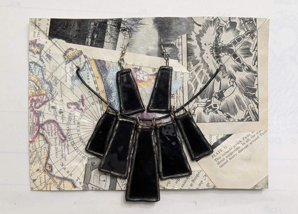 This segmented necklace is made from recycled glass that comes from sources like cups, plates and bottles.