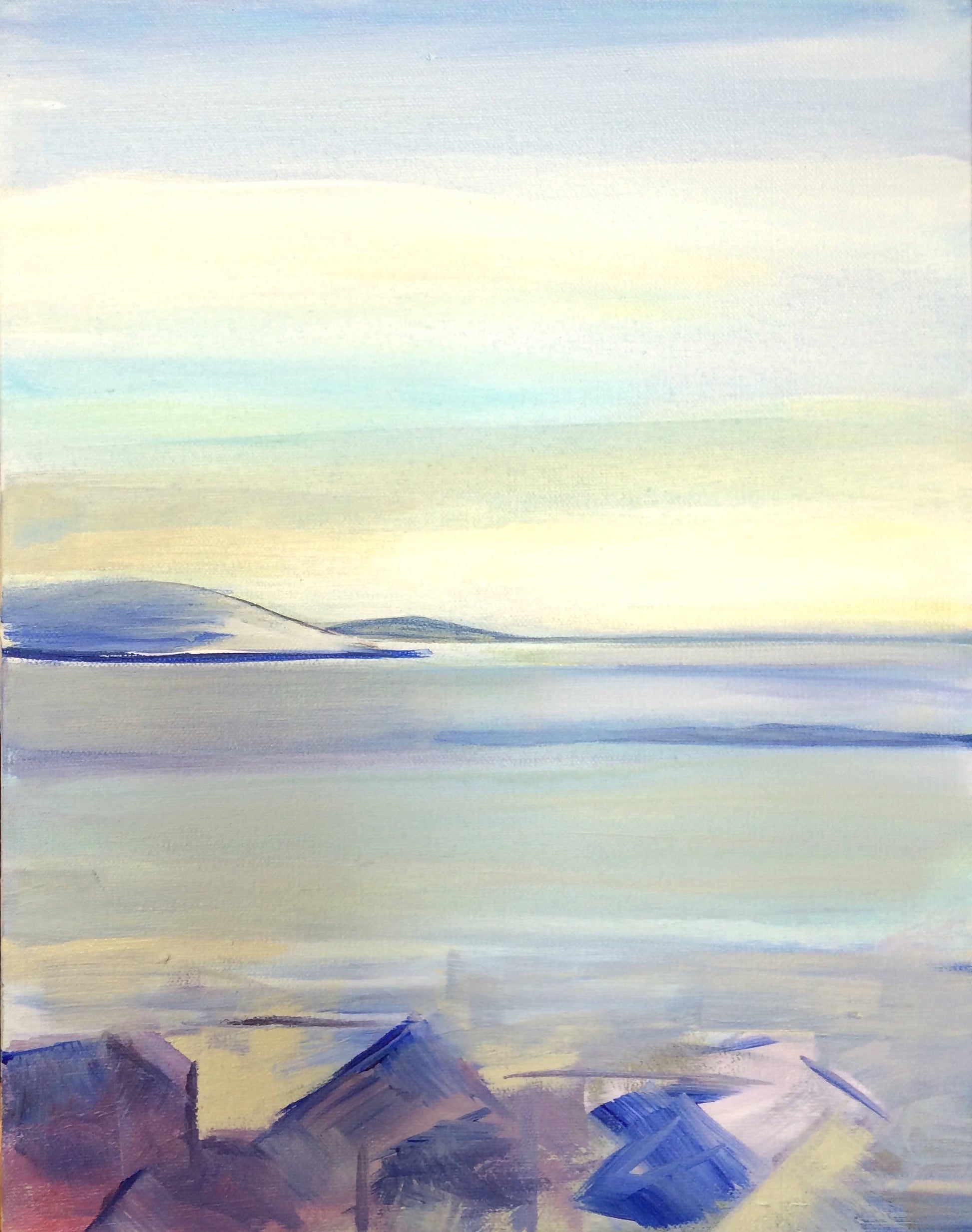 Abstract color landscape - sea shore, Acrylic/canvas, 15" x 12" with white floater frame