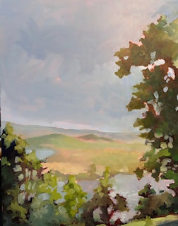 Summer haze lingers over this hot day on the Illinois Prairie - from the 12 months on the Illinois Prairie series by Plein Air Festival Founder Mark Cleveland 11 x 14 Oil on cradled panel framed