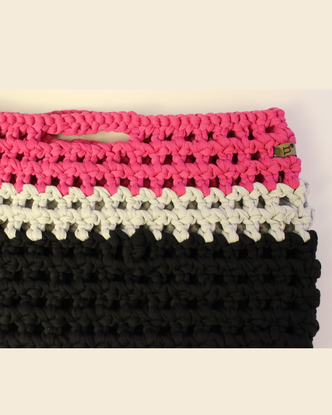Carry your essentials in style with our handmade crochet market tote, crafted from durable and breathable cotton t-shirt yarn. Measuring 9 by 12 inches, this spacious tote features larger stitch holes, making it perfect for carrying bigger items like produce or bulky goods. Its sturdy construction and charming crochet design combine practicality with a fashionable, airy look ideal for market trips and everyday errands.