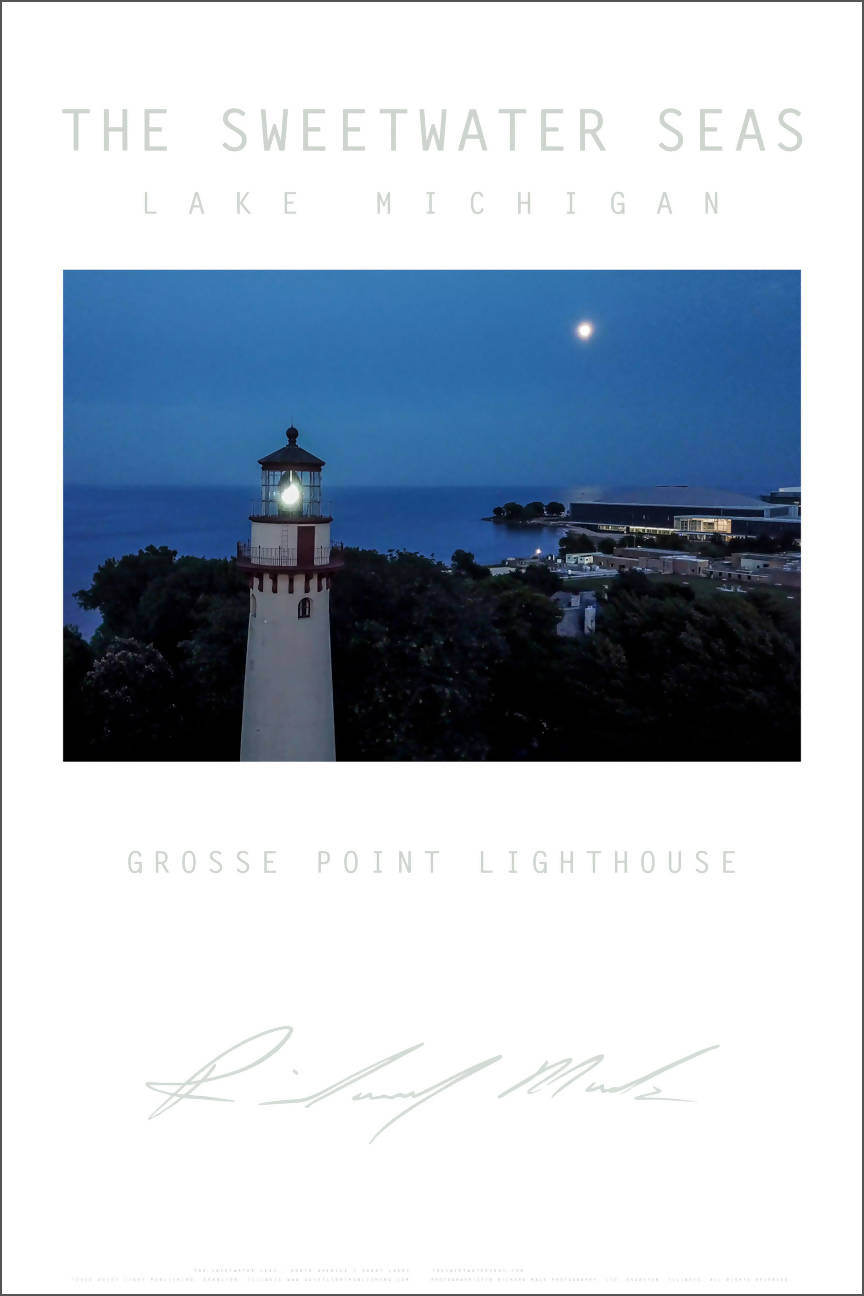 Sweetwater Seas Fine Art Poster - Gross Point Lighthouse Aerial 3 - FRAMED