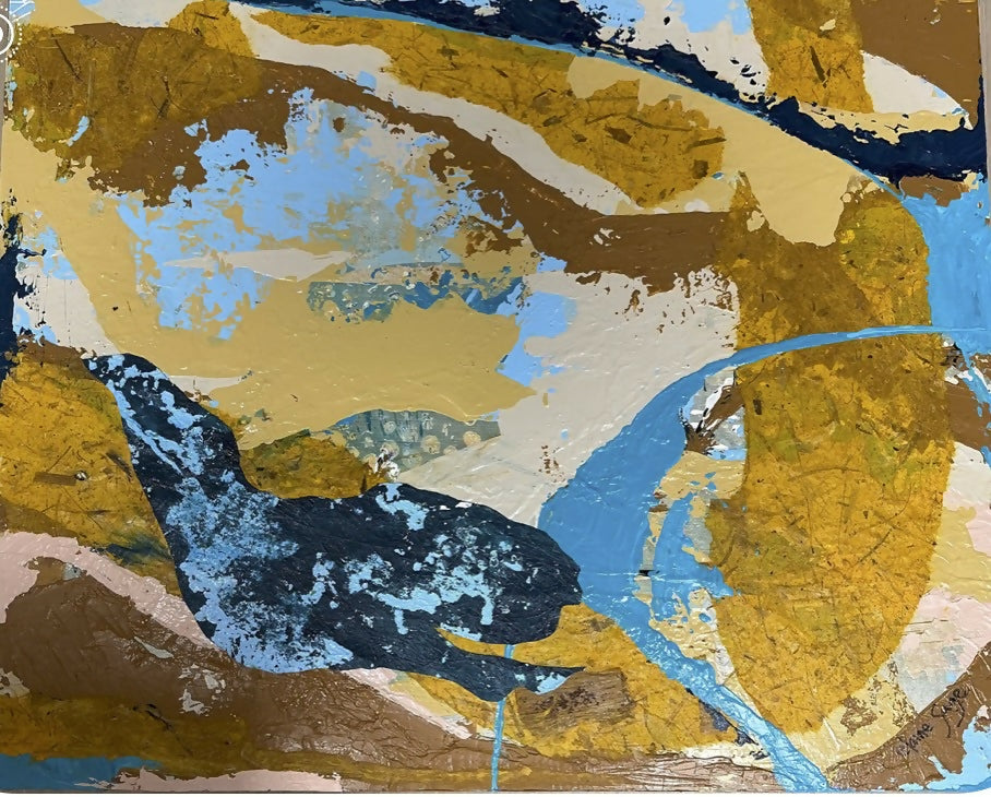 This is a mixed media painting (acrylic) on a wood panel. 16x20