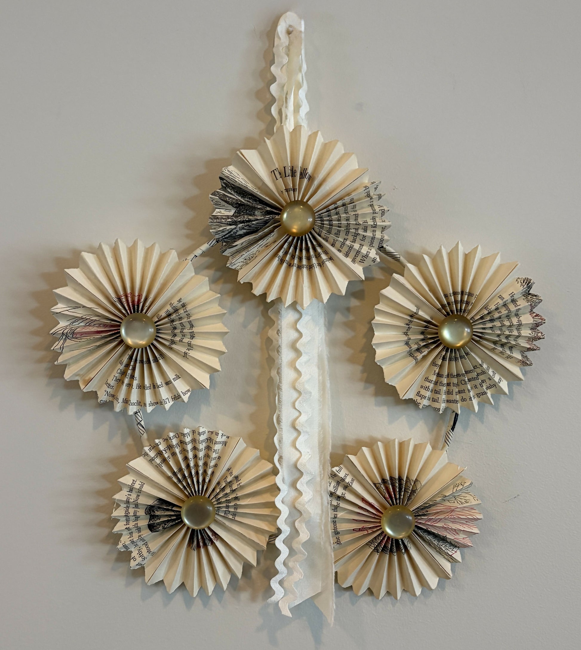 Designed using book pages from a 1960’s collection of children’s stories , a matching set of buttons and cream ribbon and vintage rick rack. The Little Fellow measures 12” x 12”. Made using upcycled recycled materials.