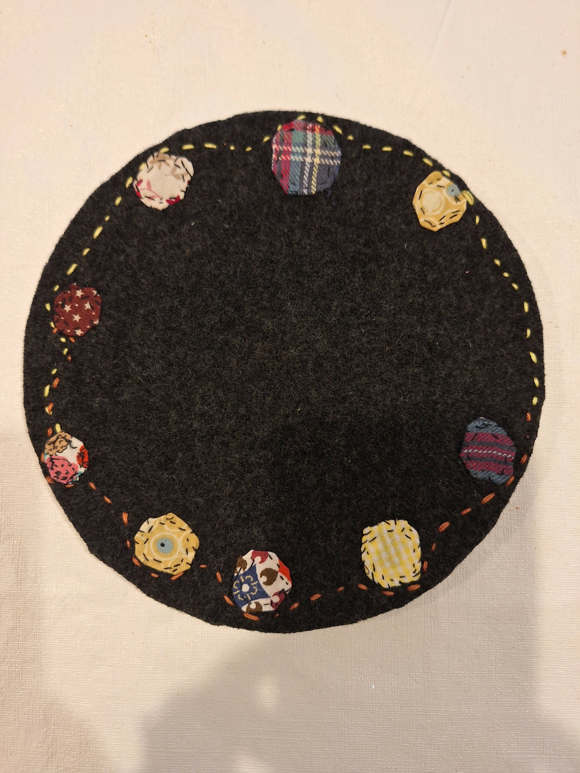 Boiled wool, hand embroidered trivet: Circles