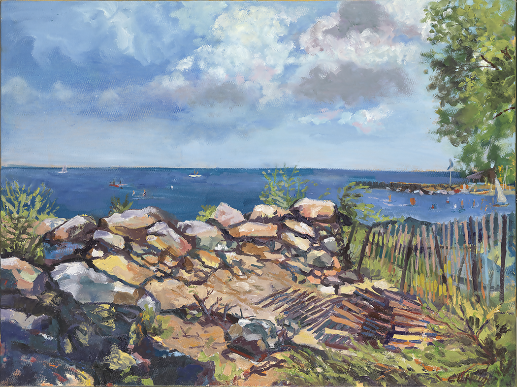 Oil painting painted during Evanston 2023 Plein Air Festival, painted at Greenwood Street Beach.