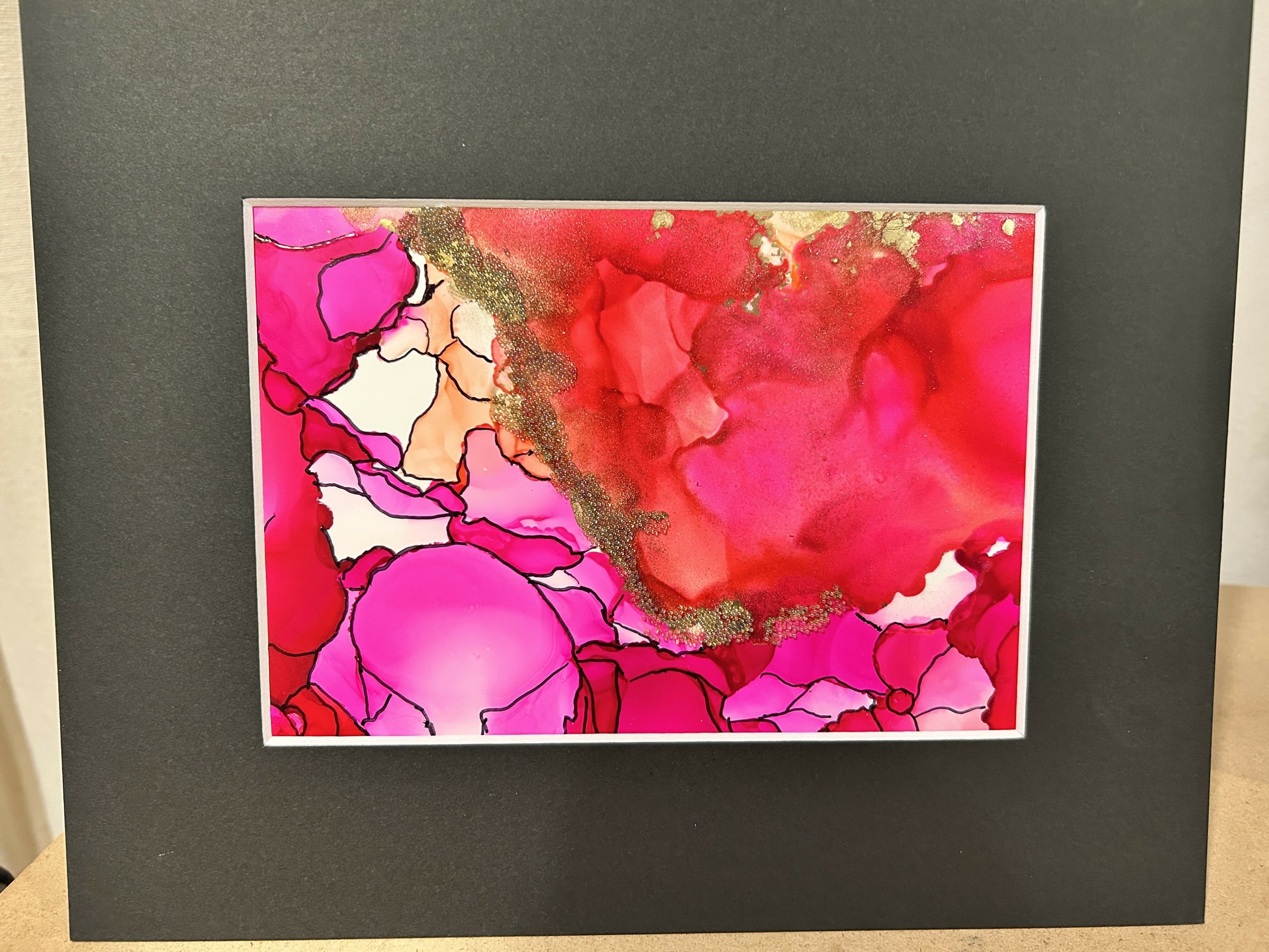 Alcohol Ink Painting 6 1/2" X 4 1/2". Black Matte 8 X 10 Mixed Media