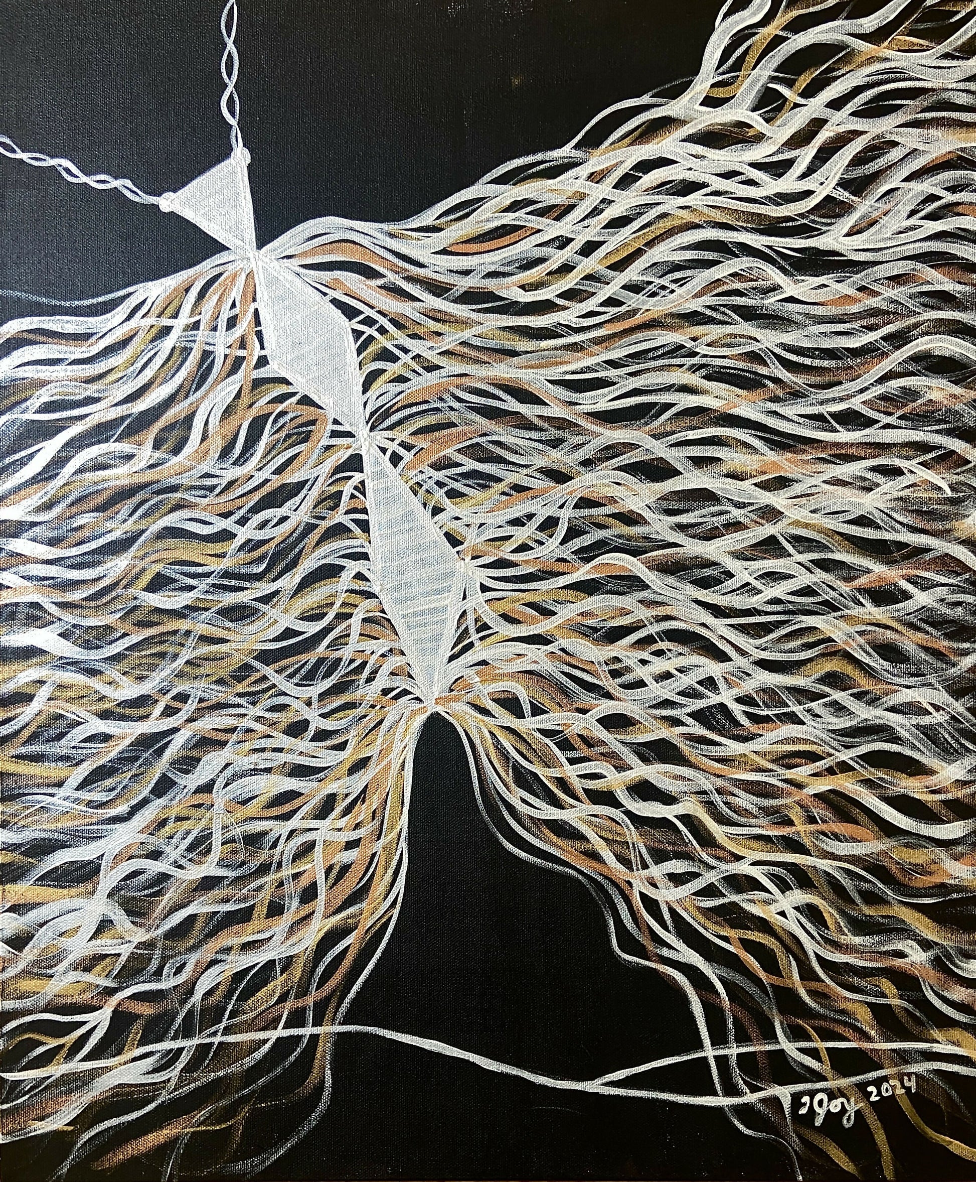 24 by 24 inch original painting on canvas, oil pastel and acrylic, 2024
